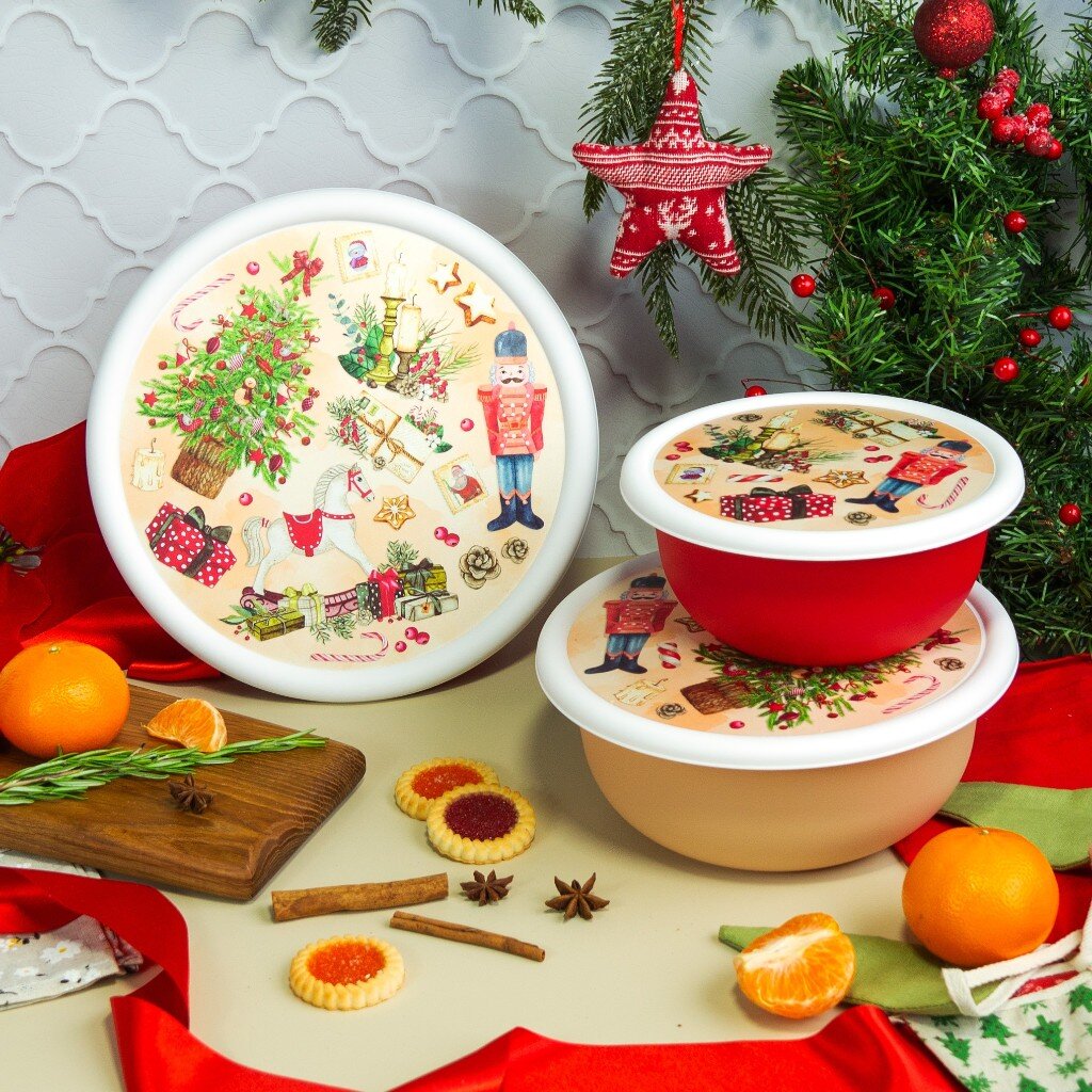 - С крышкой и праздничным рисунком — не только функционально, но и украшает кухню.