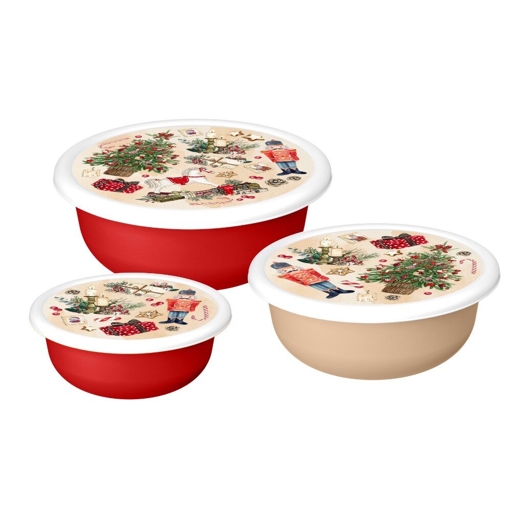 Миска пластиковая с крышкой 1.2 л Homver Modena — удобное решение для хранения и сервировки, яркий декор, подходит для СВЧ и новогоднего стола.