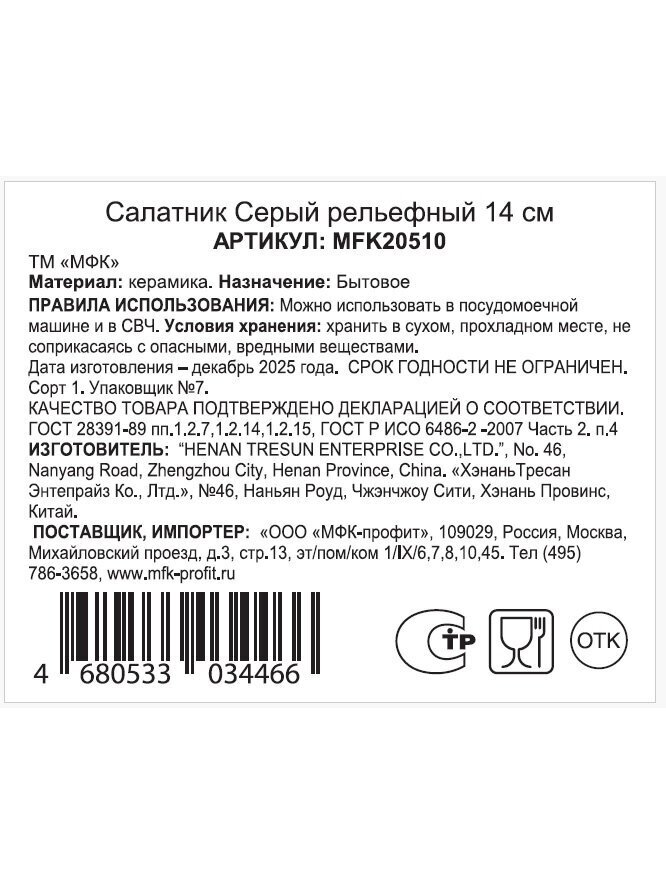 Вы можете приобрести «Салатник керамика, круглый, 14х7 см, 0.84 л, Серый рельефный, МФК, MFK20510, серый» и другие товары в нашем интернет-магазине в Иваново по низким ценам и с бесплатным самовывозом.