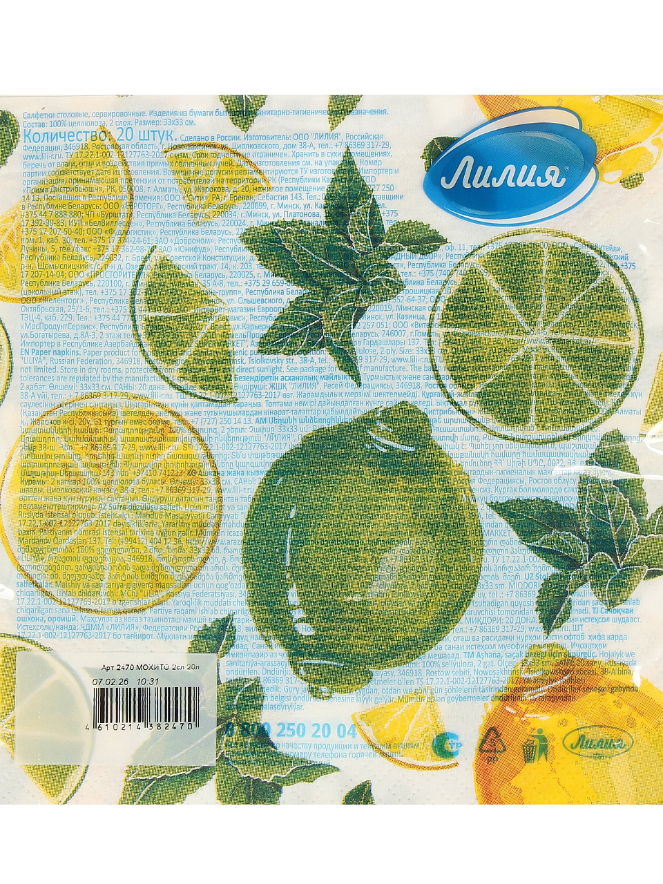 Салфетки Лилия «Мохито» 20 шт — универсальное решение для сервировки стола и уютных встреч: 2 слоя, размер 33х33 см, выгодно для дома и дачи.