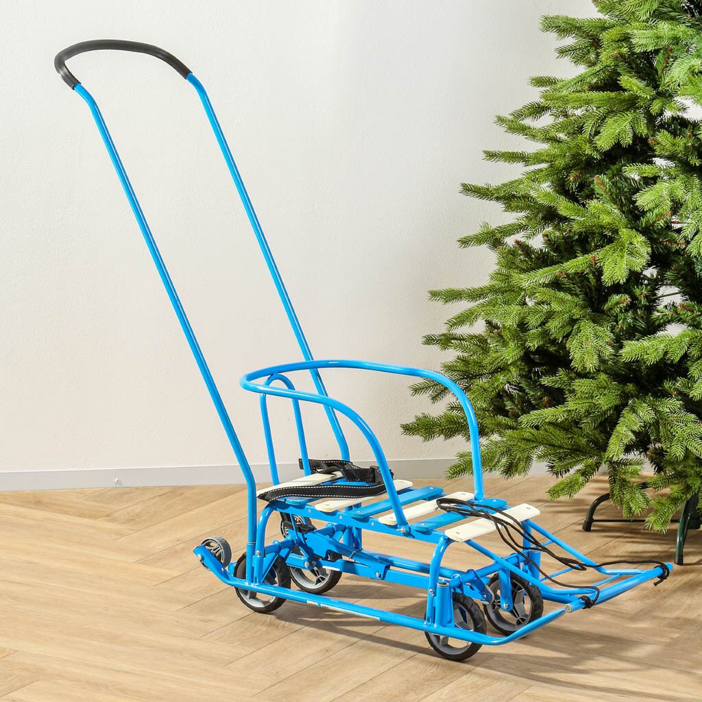 - высота санок по сиденье на полозьях/на колесах: 180/240 мм