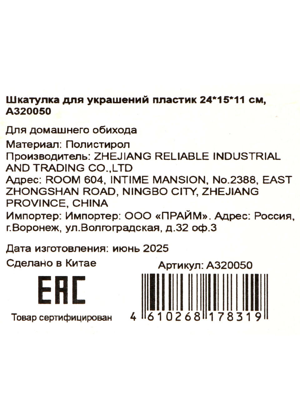 Вы можете приобрести «Шкатулка для украшений, пластик, 24х15х11 см, A320050» и другие товары в нашем интернет-магазине в Липецке по низким ценам и с бесплатным самовывозом.