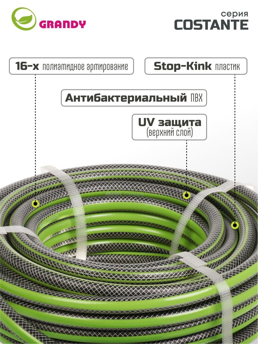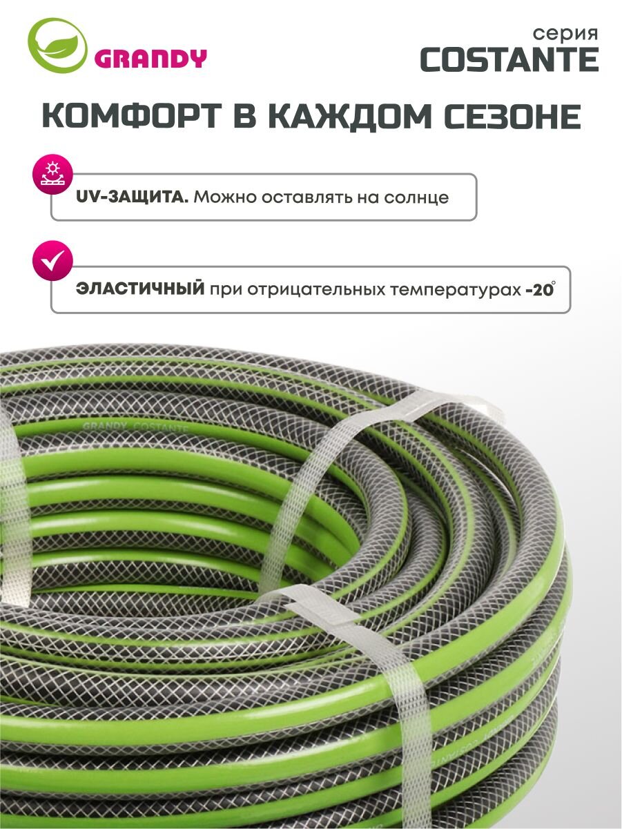 Шланг Grandy обладает всеми необходимыми характеристиками: очень прочный, гибкий и устойчивый к скручиванию, что делает его идеальным для использования в любых условиях. Материал, из которого изготовлен шланг, прекрасно справляется с воздействием солнечных лучей, благодаря чему шланг не выгорает и не портится со временем.
