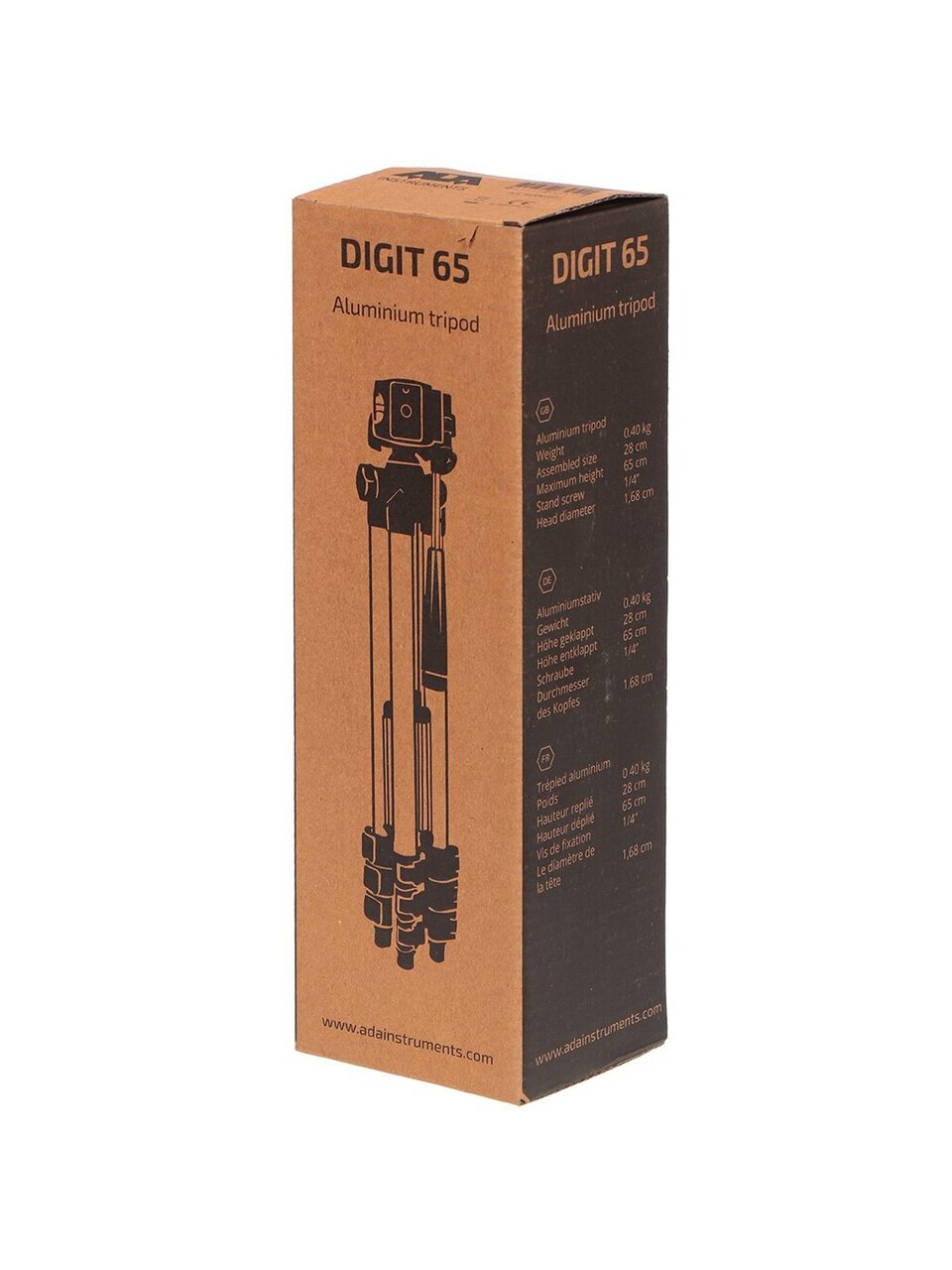 Штатив для фото/видео ADA DIGIT 65 - раскладной штатив с элевационной колонкой до 65 см. Легкий штатив выполнен из алюминиевого сплава. Малый размер - легко носить, легко работать. Горизонтальный луч можно точно установить на нужной высоте при помощи выдвижной колонки. Диапазон регулирования - 12 см. Универсальный штатив для работы на небольшой высоте. Отлично подходит для работы с лазерным инструментом для установки электрических розеток, конализационных труб, радиаторов отопления и т.п.