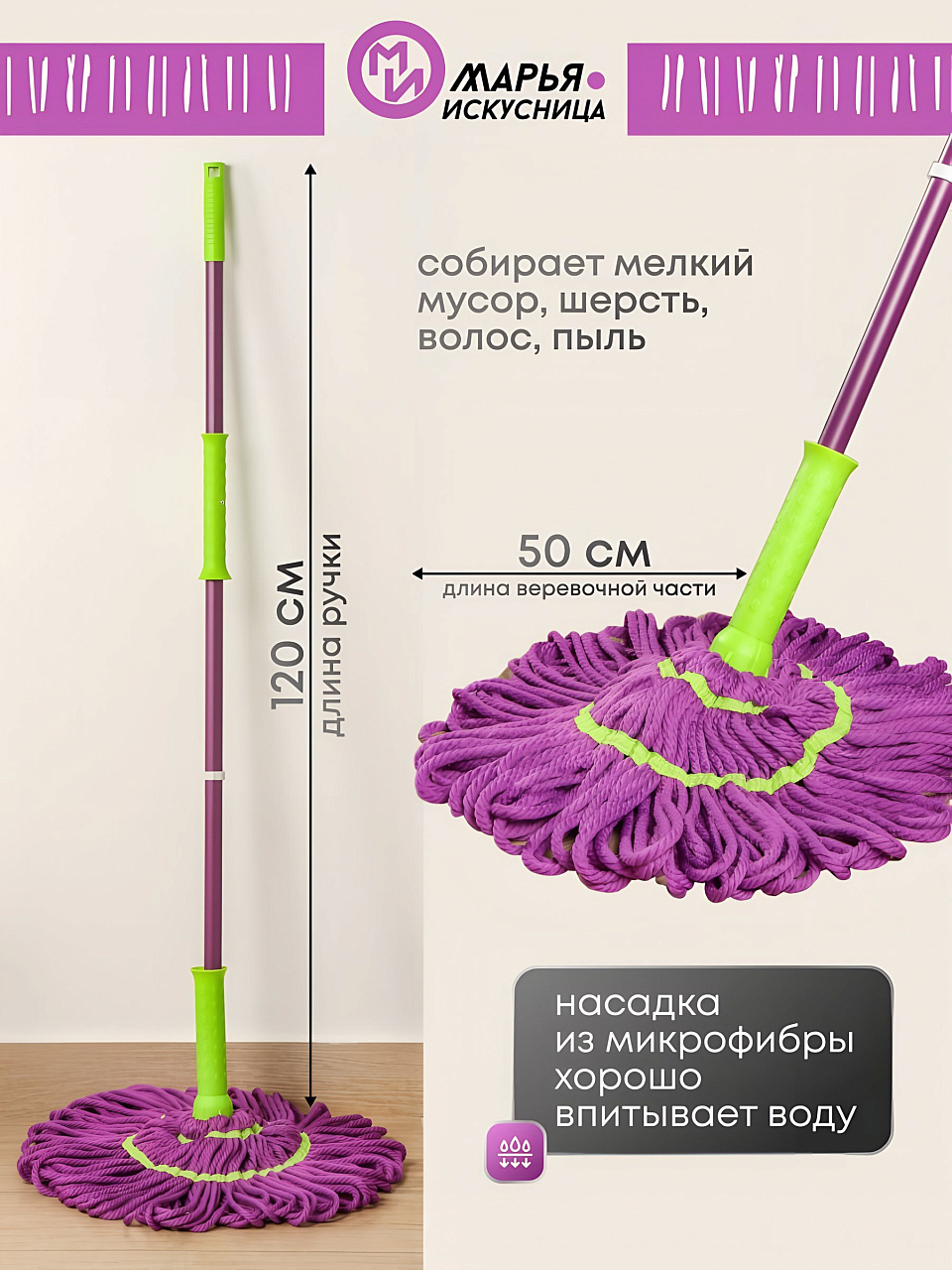 Вы можете приобрести «Швабра веревочная, микрофибра, 120 см, фиолетовый, с отжимом, фиолетовая, Марья Искусница, KD-4829» и другие товары в нашем интернет-магазине в Клинцах по низким ценам и с бесплатным самовывозом.