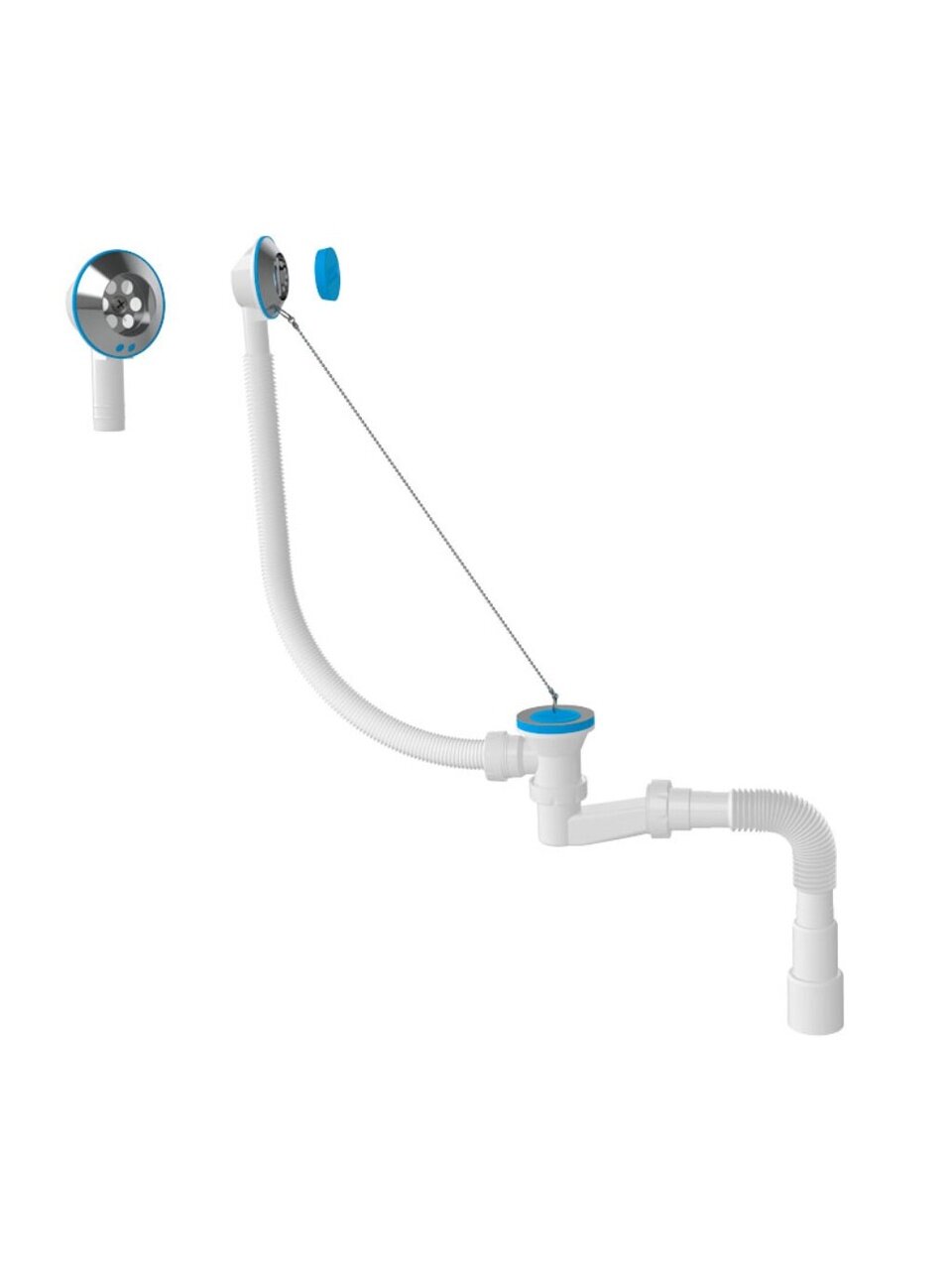 Вы можете приобрести «Сифон для ванны, с переливом, низкий, h120, металлическая цепочка, с гибкой трубой 40х40/50, Aquanova, 1524» и другие товары в нашем интернет-магазине в Белгороде по низким ценам и с бесплатным самовывозом.