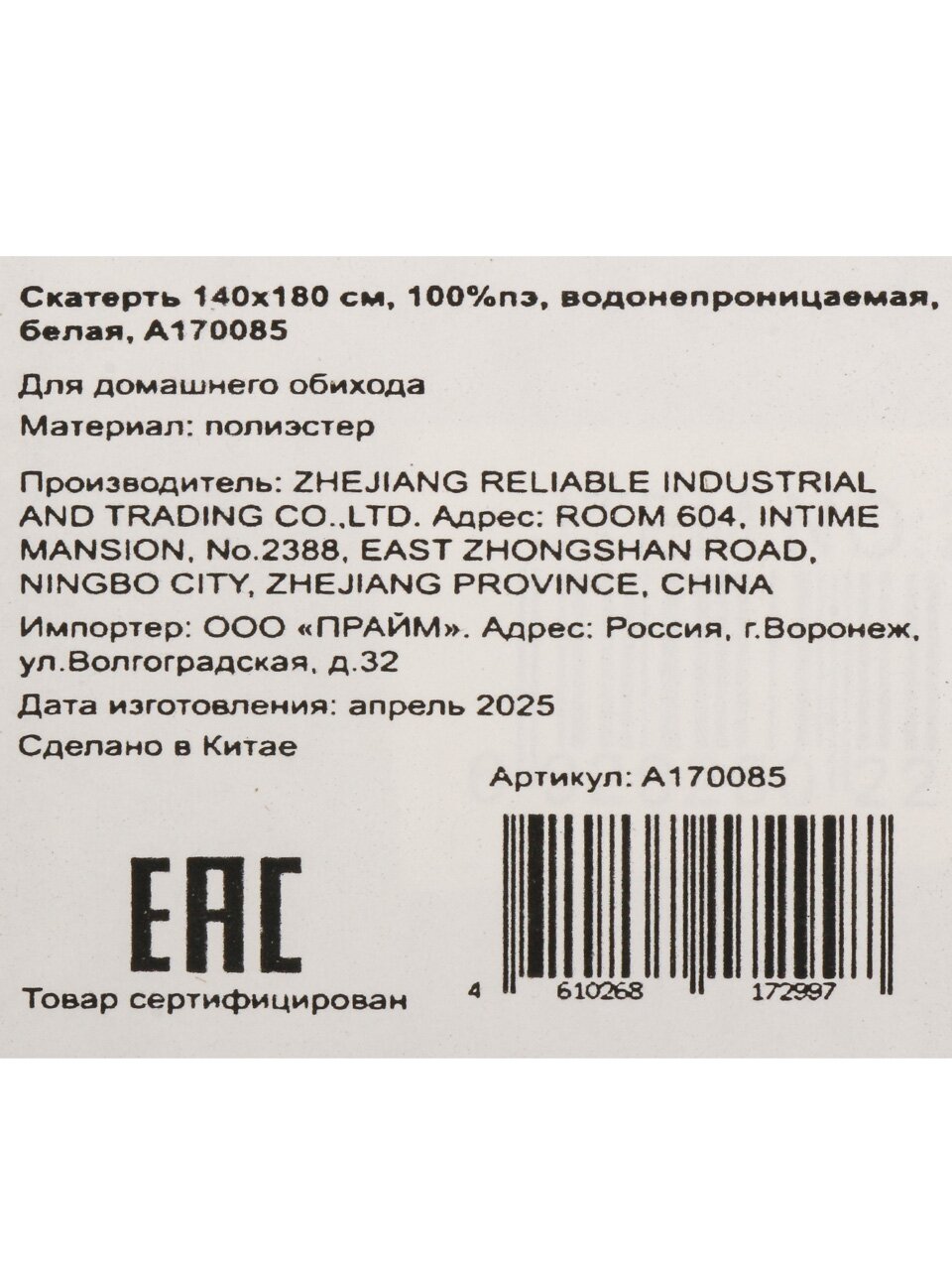 Скатерть 140х180 см, 100%пэ, водонепроницаемая, белая, A170085