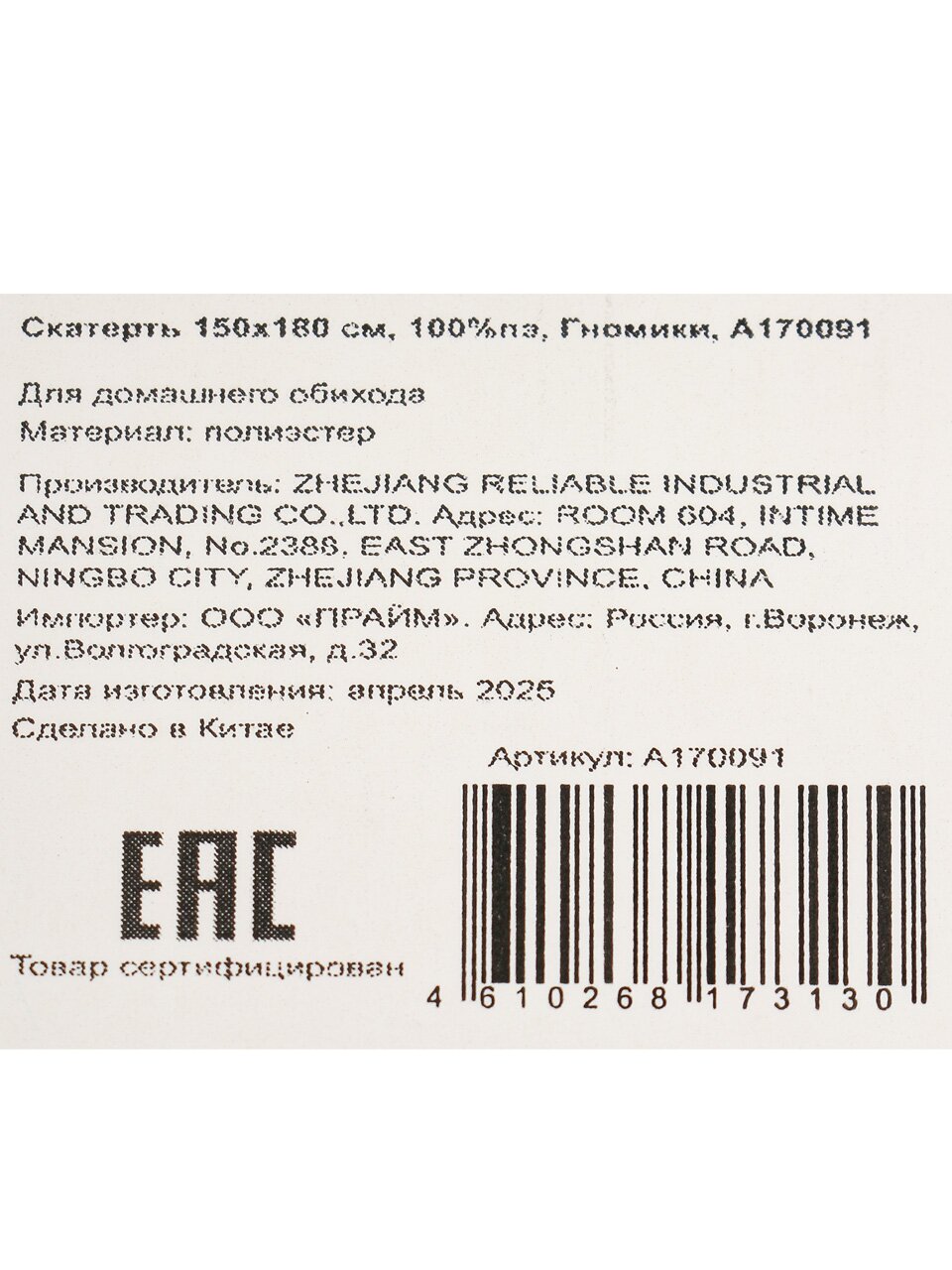 Скатерть 150х180 см, 100%пэ, Гномики, A170091