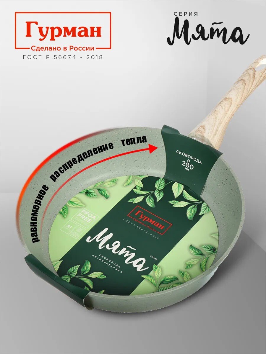 Сковорода 28 см из литого алюминия с гранитным антипригарным покрытием «Гурман Мята»: идеальный выбор для индукции, дома и дачи — готовьте без пригорания и усилий.