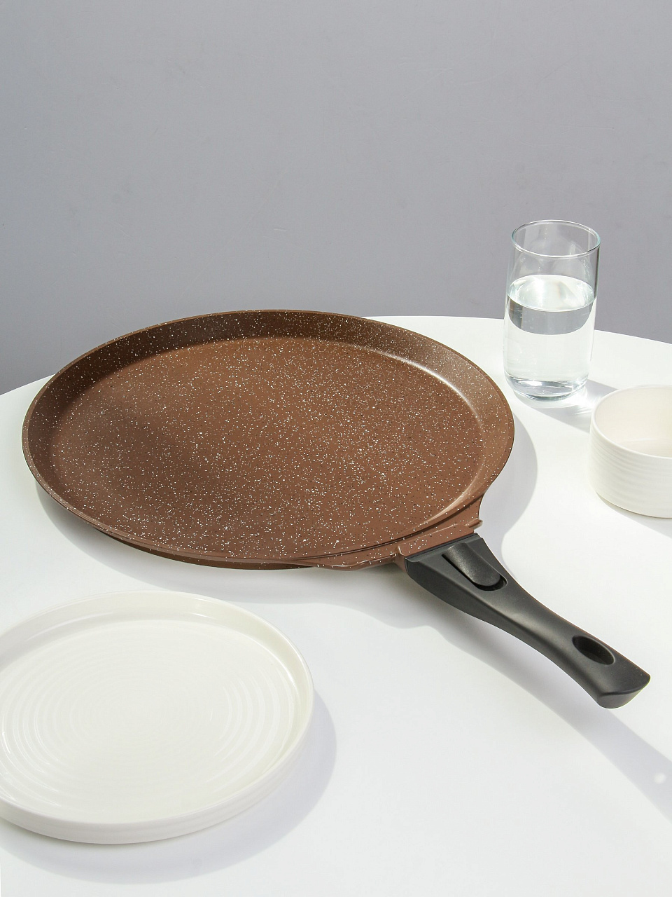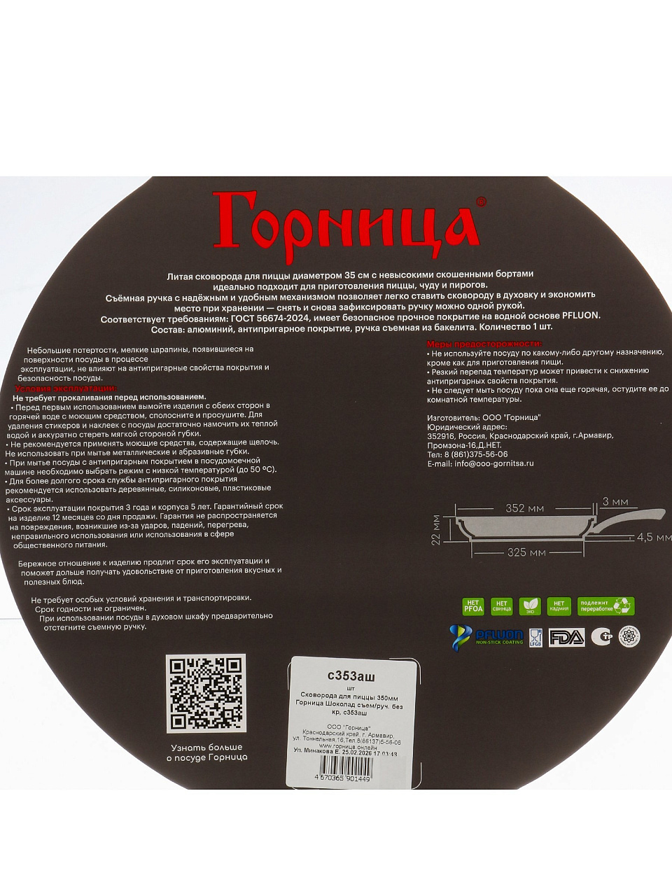Сковорода для пиццы 35 см Горница — антипригарная гранитная поверхность, съемная ручка, идеальный диаметр для домашней и дачной выпечки.