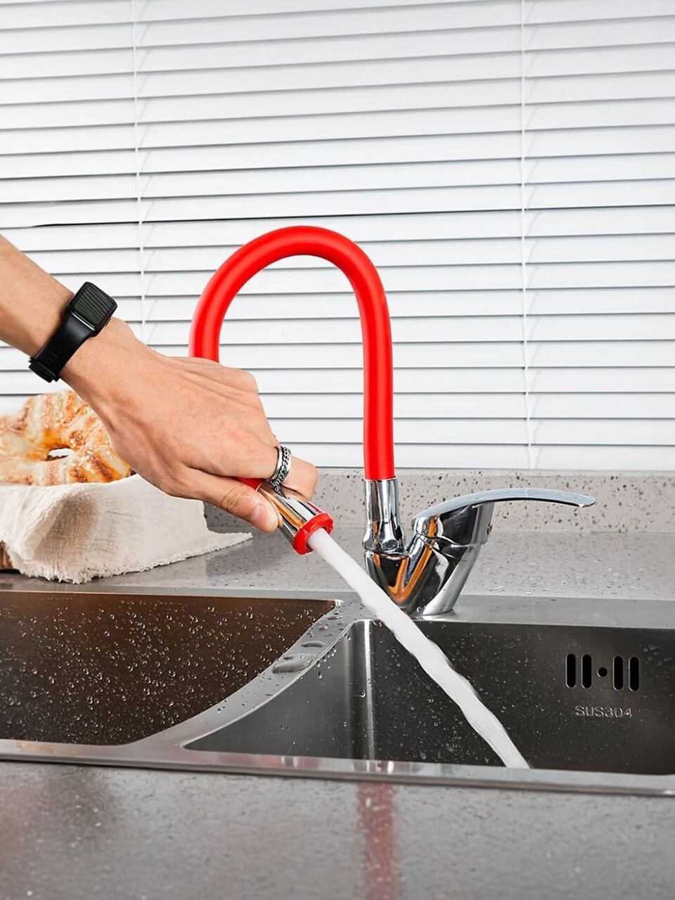 - Гибкий излив 17 см: легко направлять поток воды для мытья крупных предметов и труднодоступных зон