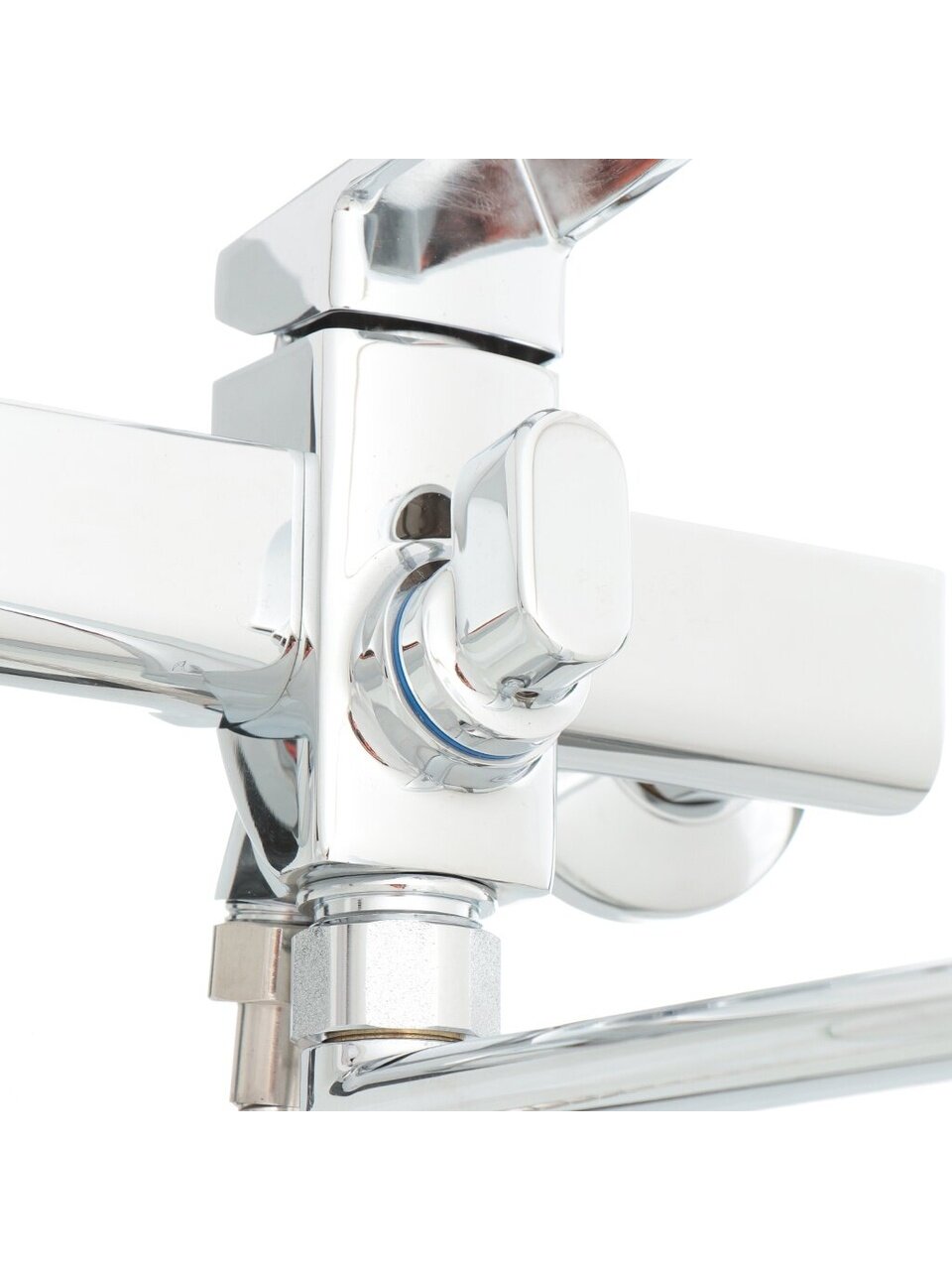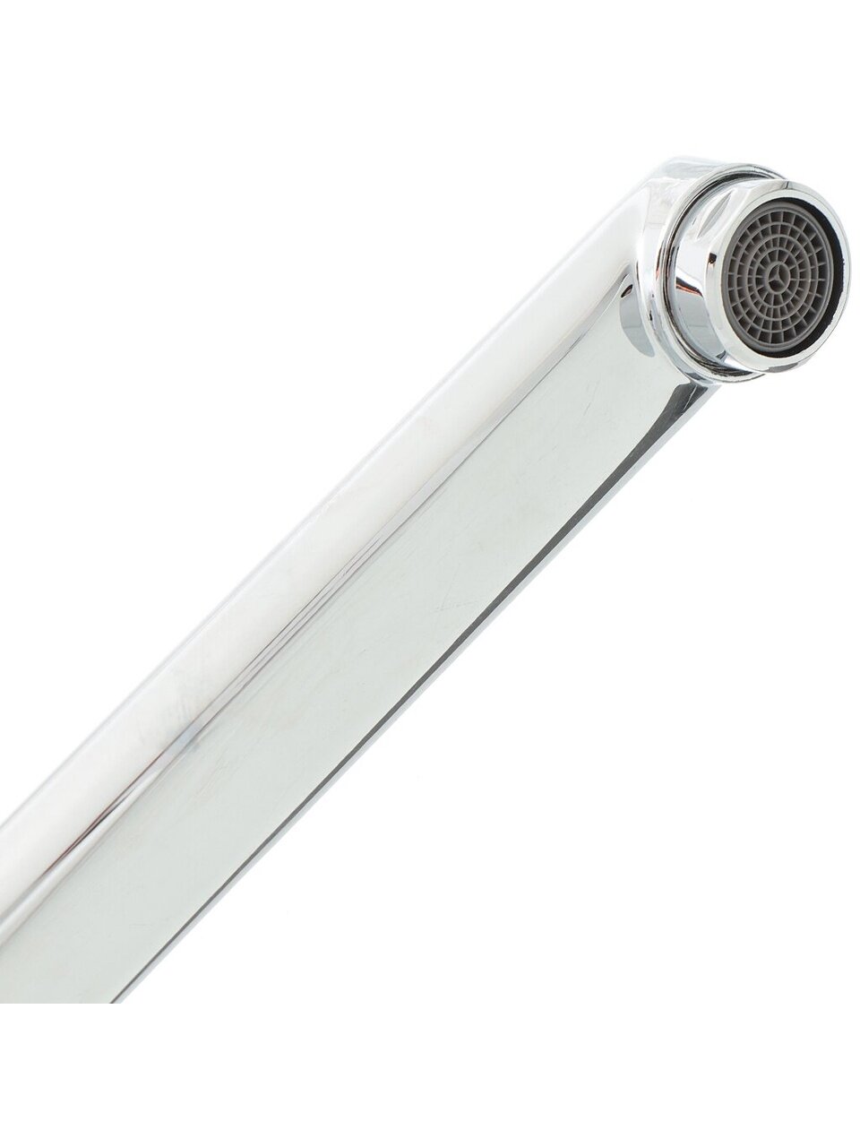 - Длинный поворотный излив 32,2 см из силуминового корпуса с глянцевым хромом — удобно для ванны и душа