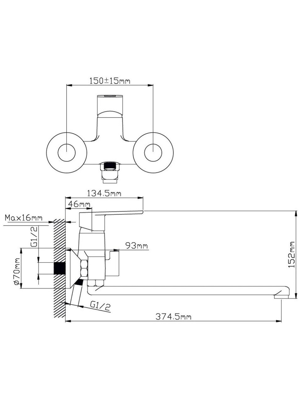 - Долговечный цинковый сплав с глянцевым хромом, излив 32,8 см, монтаж на 2 отверстия с межосевым расстоянием 150 мм