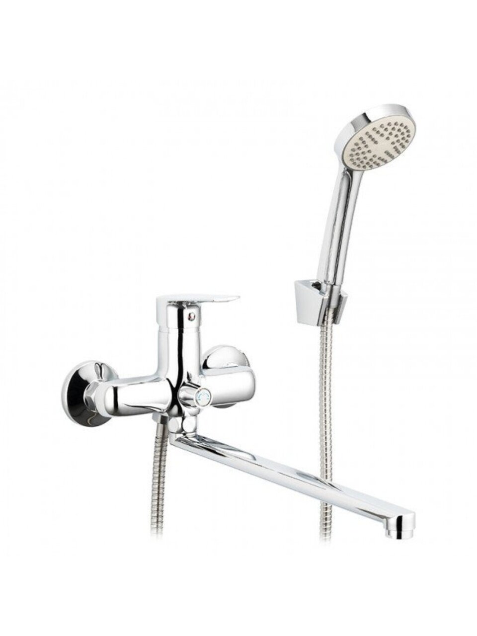 Длинный излив (35 см) позволяет удобно набирать воду в ванну и использовать душ, экономя место и время. Поворотная конструкция облегчает уход за сантехникой и наполнение емкостей.