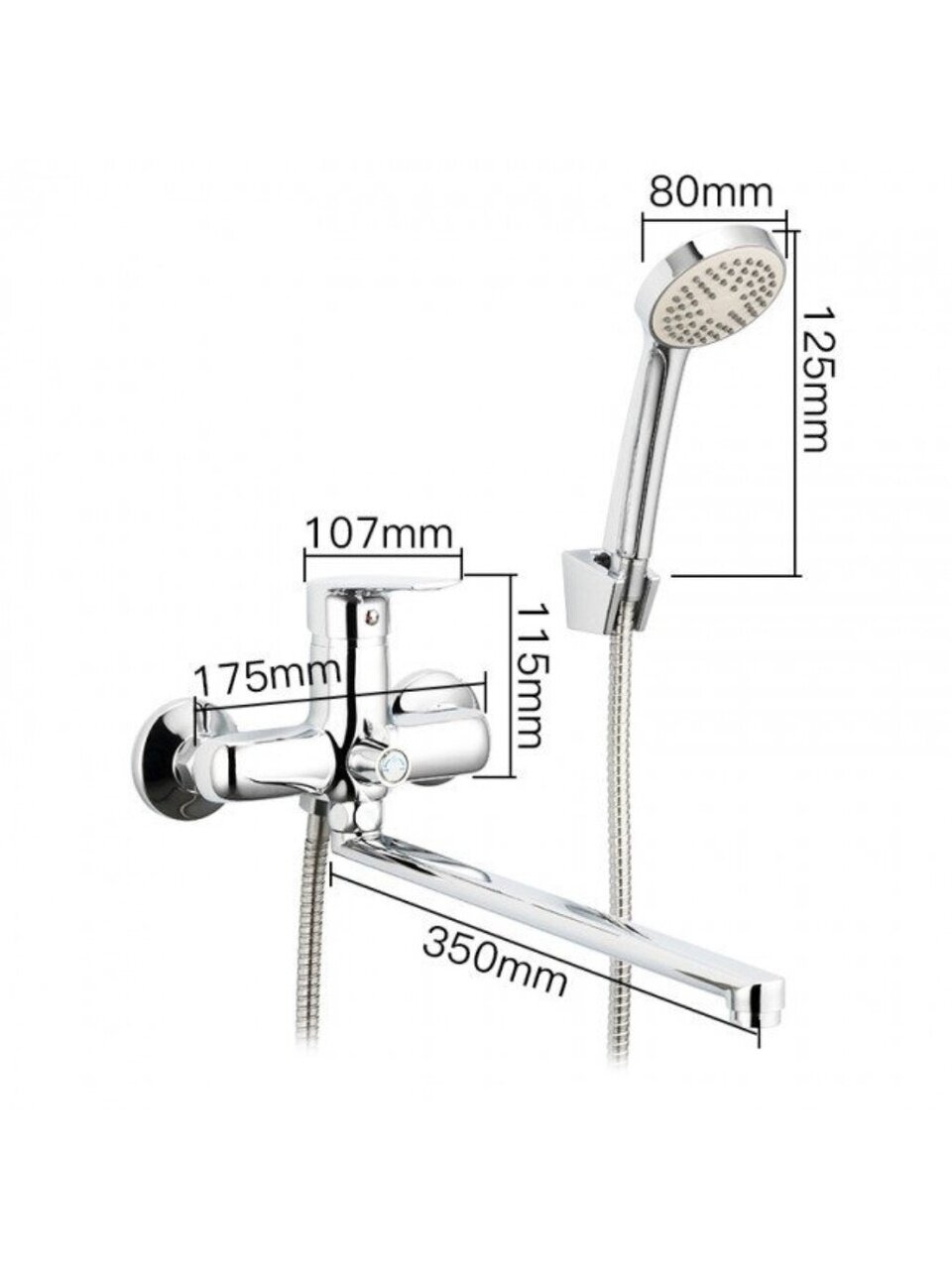 - Универсальность — подходит для дома, дачи или в качестве подарка: монтаж на 2 отверстия, стандартная подводка 1/2", поворотный длинный излив для ванны и душа.