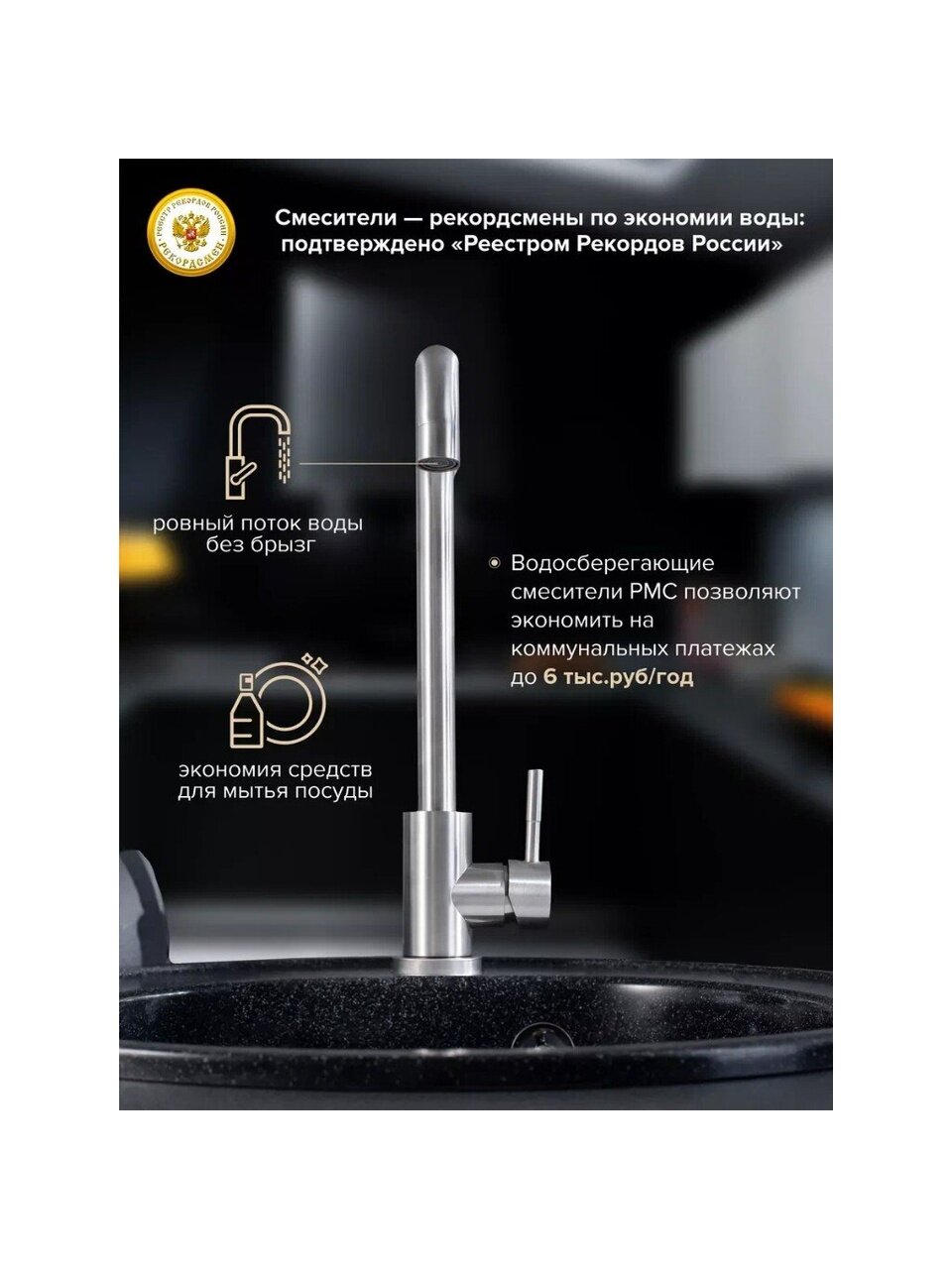 Смеситель для кухни РМС SUS124-017F-1: долговечная нержавеющая сталь, высокий излив 25 см, гибкая подводка — идеальное решение для современной кухни.