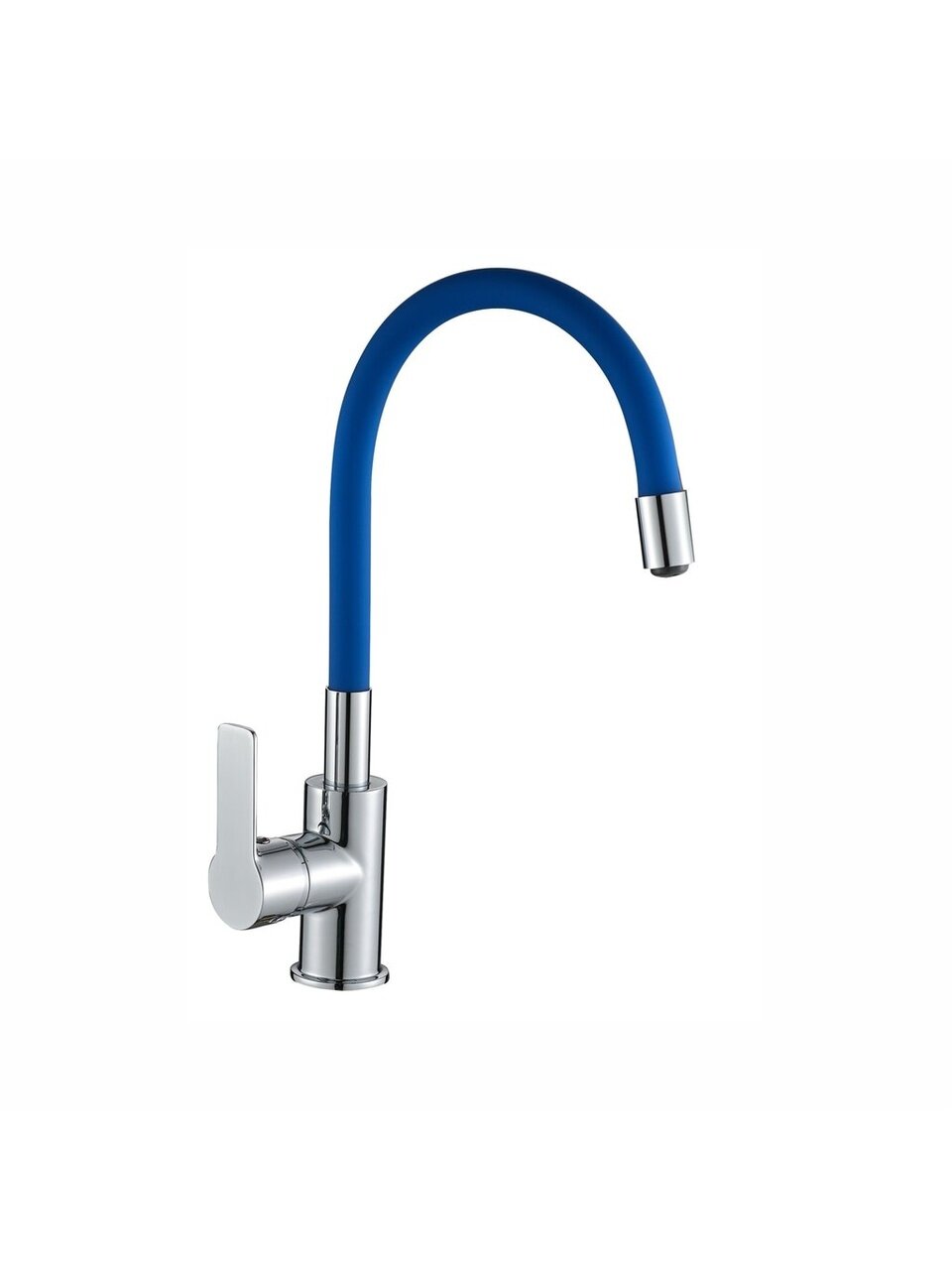 Смеситель для кухни Gota Rocio Santa-Barbara: стильный синий акцент, латунный корпус, высокий поворотный излив 42,5 см — комфорт и долговечность для вашей кухни.