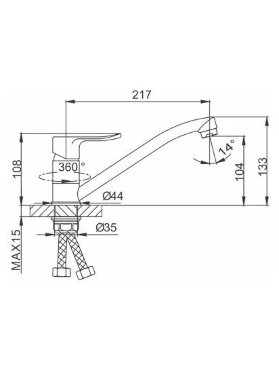 - Универсален для квартиры, дачи или в подарок: поворотный излив 21,7 см оптимален для мойки разных размеров