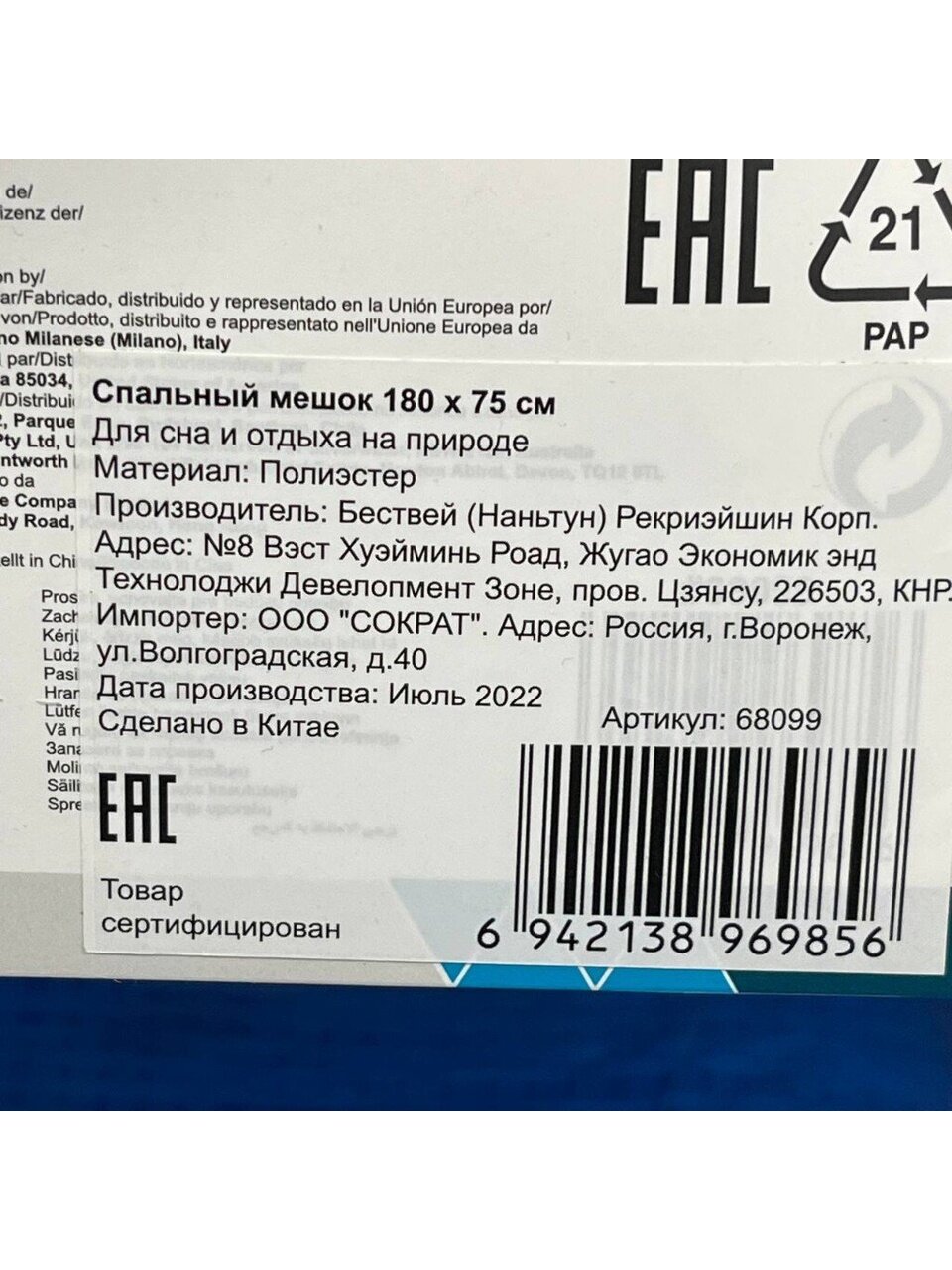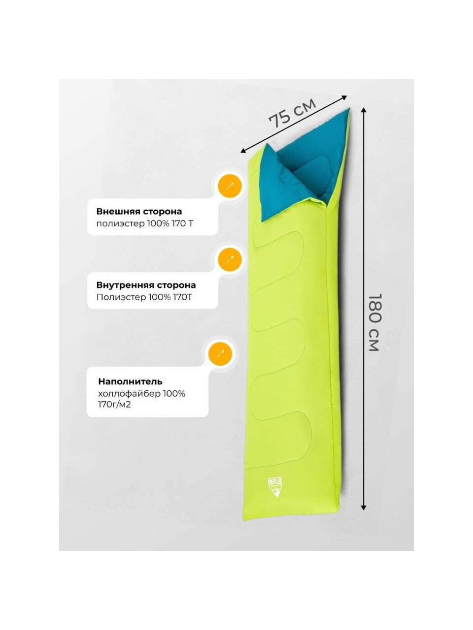 Вы можете приобрести «Спальный мешок одеяло, 180х75 см, 7 °C, 11 °C, 2 слоя, полиэстер, синтетика, в ассортименте, Bestway, 68099» и другие товары в нашем интернет-магазине в Нижнем Новгороде по низким ценам и с бесплатным самовывозом.