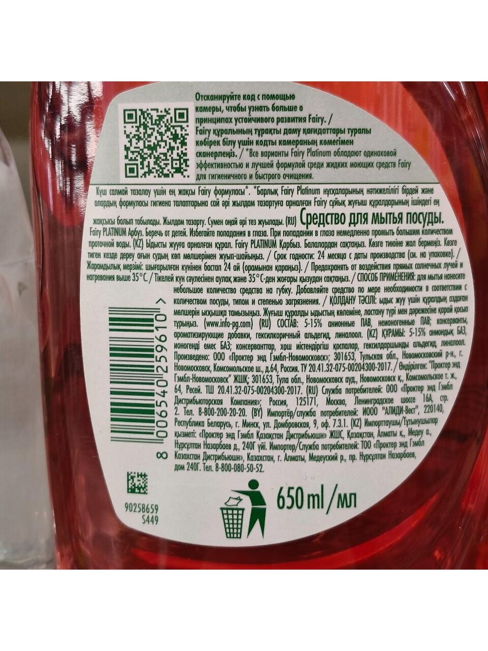 Вы можете приобрести «Средство для мытья посуды Fairy, Platinum Арбуз, 650 мл» и другие товары в нашем интернет-магазине в Ельце по низким ценам и с бесплатным самовывозом.