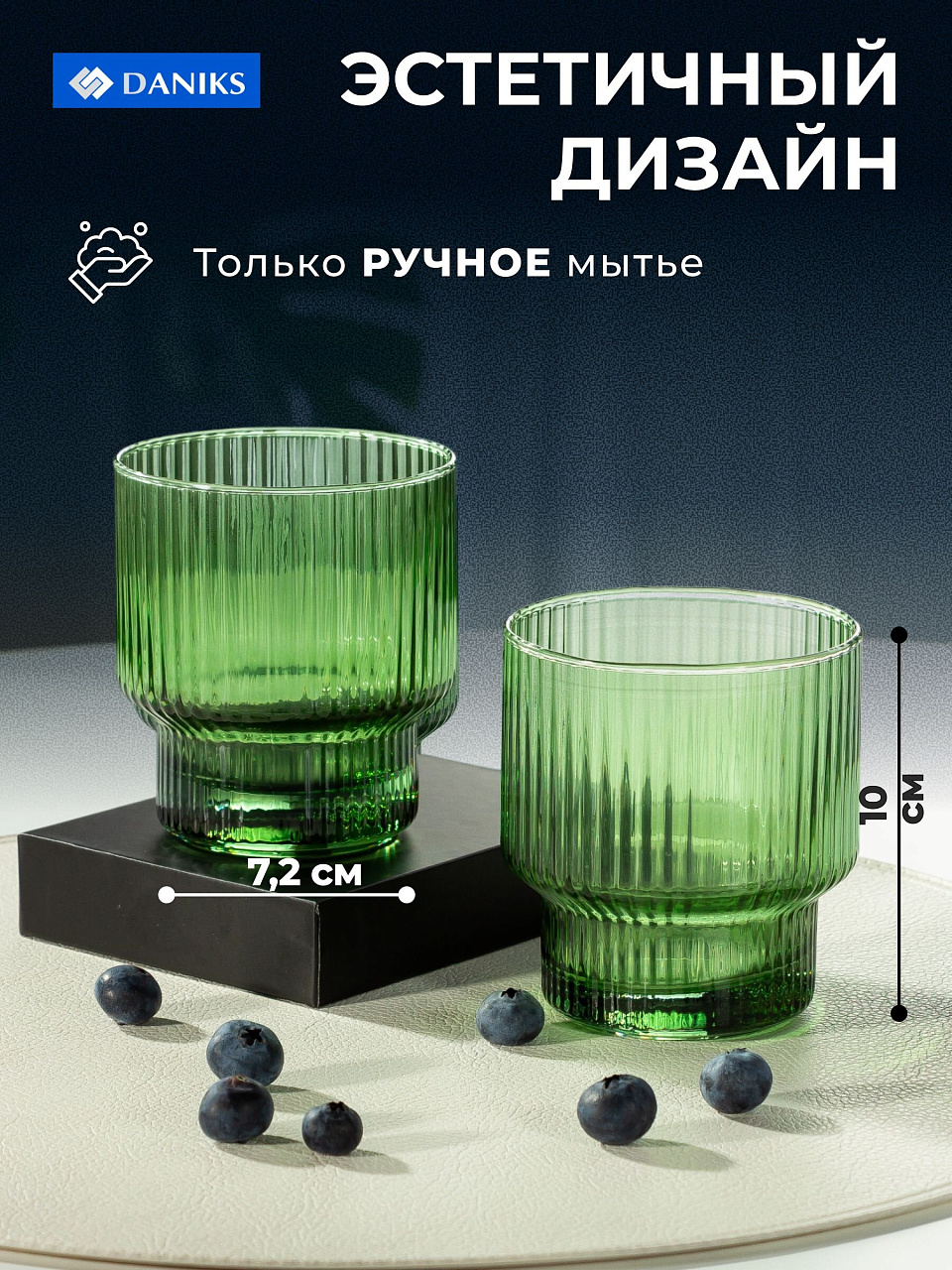 Стильные стаканы Daniks Грани Малахит 350 мл — идеальный выбор для дома и дачи: 2 шт. в наборе, современный дизайн, прочное стекло, выгодная цена.