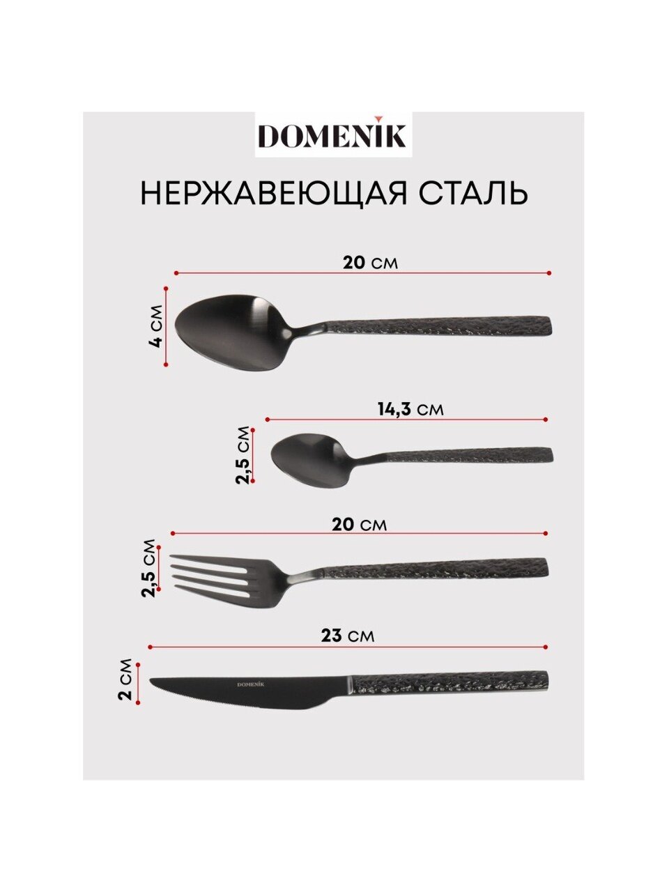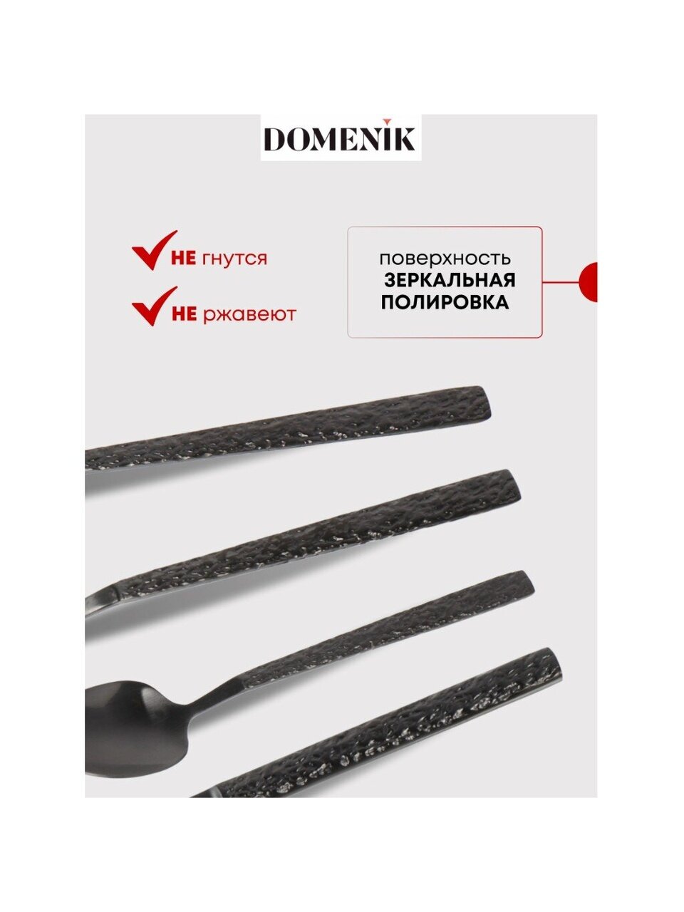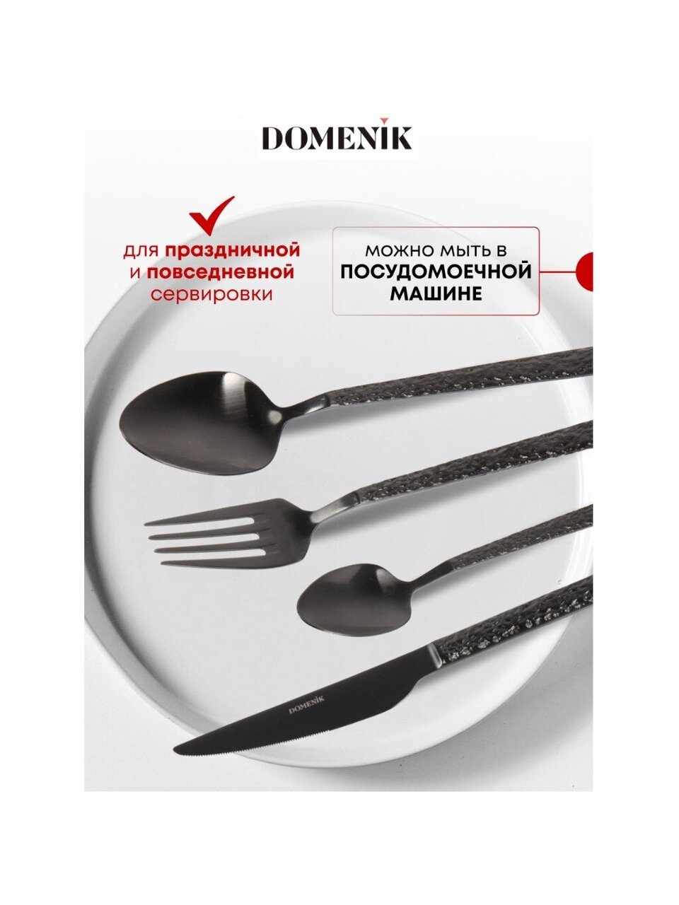 Премиальный набор столовых приборов Domenik Rock Black 24 предмета — стильный подарок и практичное решение для сервировки на 6 персон. Черная сталь, подарочная упаковка.