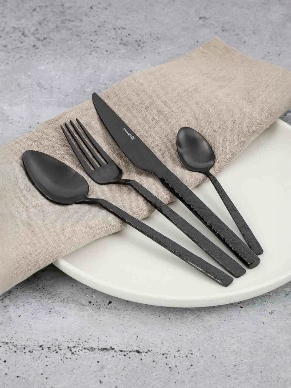 Если вы ищете, какой набор столовых приборов выбрать для подарка или сервировки на праздник, обратите внимание на этот комплект: он не требует особого ухода, не боится частого использования, а тонкие металлические ручки удобны для ежедневного применения. В отличие от аналогов с пластиковыми или посеребренными деталями, Domenik Rock Black не теряет внешний вид со временем и не требует полировки. Часто спрашивают, можно ли мыть такие приборы в посудомоечной машине — в этом наборе рекомендуется ручная мойка для сохранения цвета и текстуры.