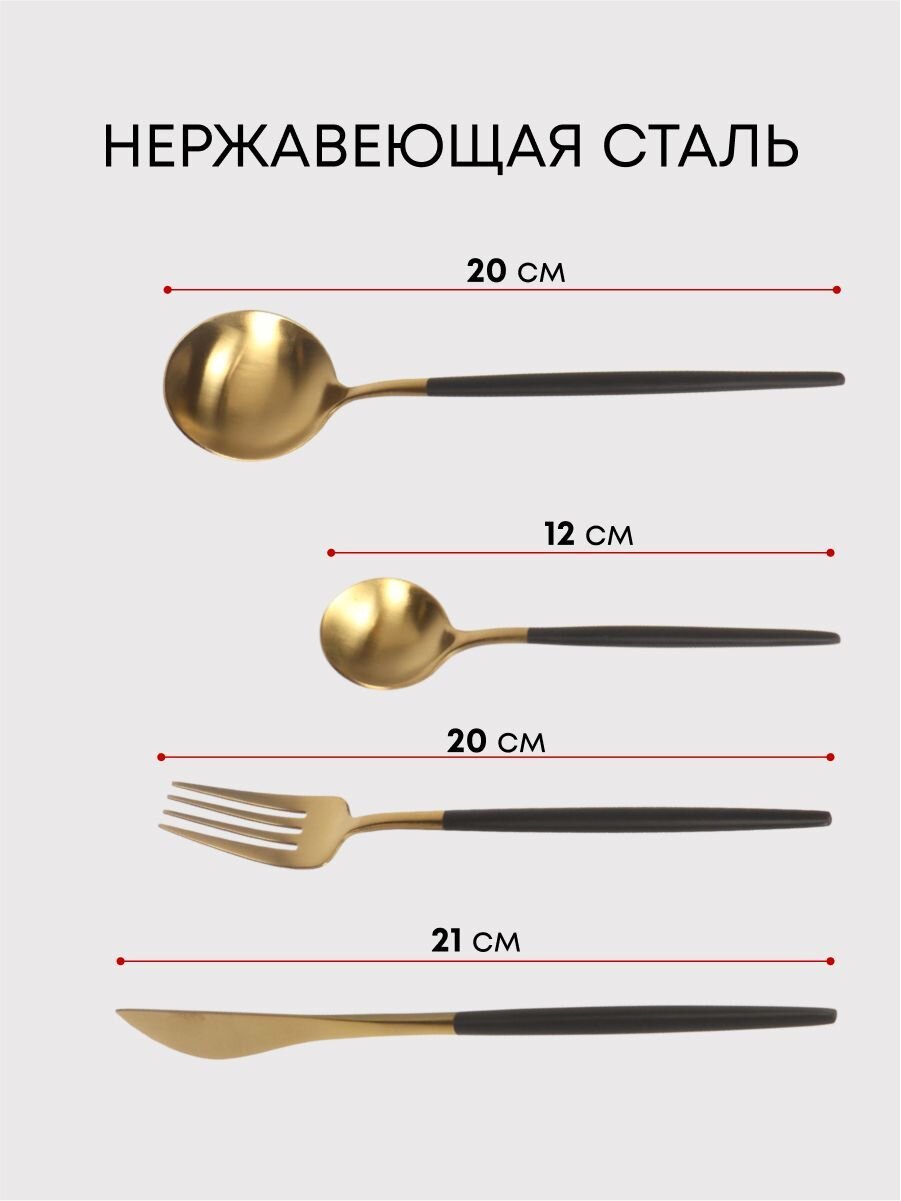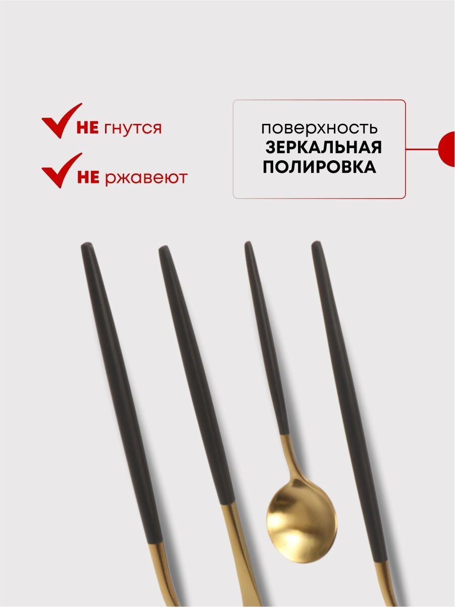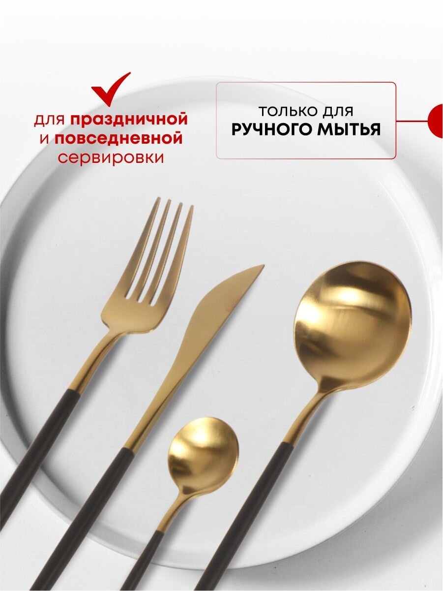 Премиальный набор столовых приборов из нержавеющей стали на 6 персон: элегантный черный с золотом, 24 предмета в подарочной упаковке — идеальный подарок и стиль для вашего стола.