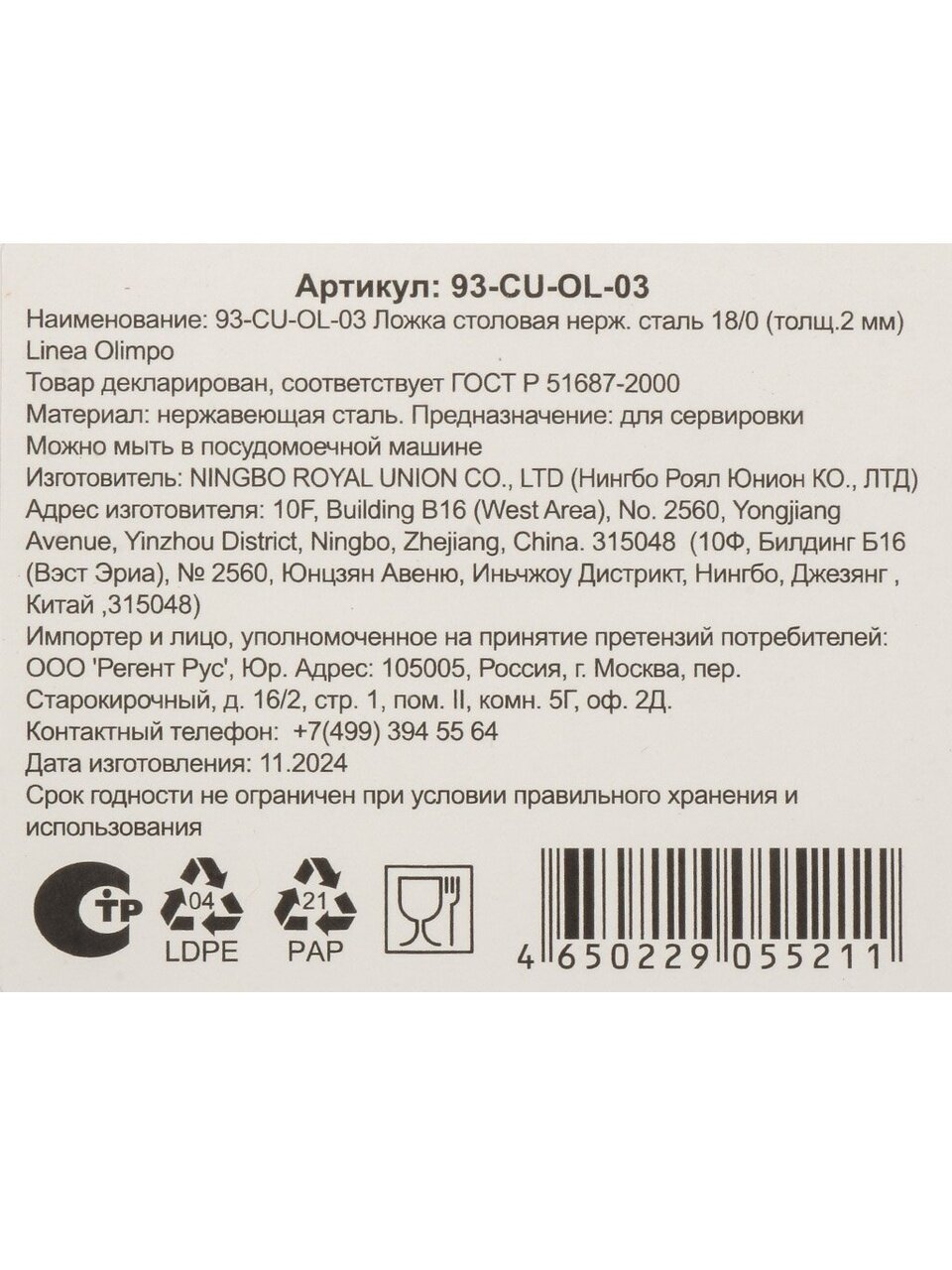 Вы можете приобрести «Ложка нержавеющая сталь, столовая, Regent Inox, Linea Olimpo, 93-CU-OL-03» и другие товары в нашем интернет-магазине в Смоленске по низким ценам и с бесплатным самовывозом.