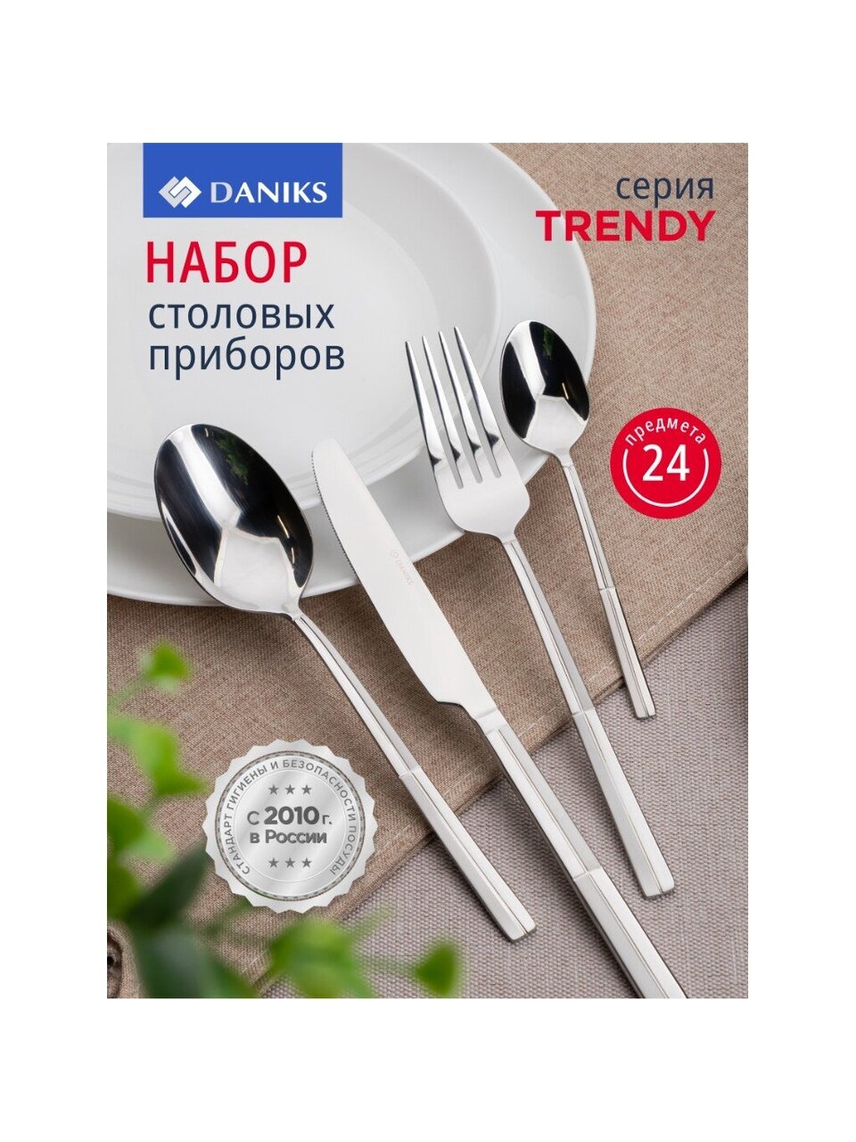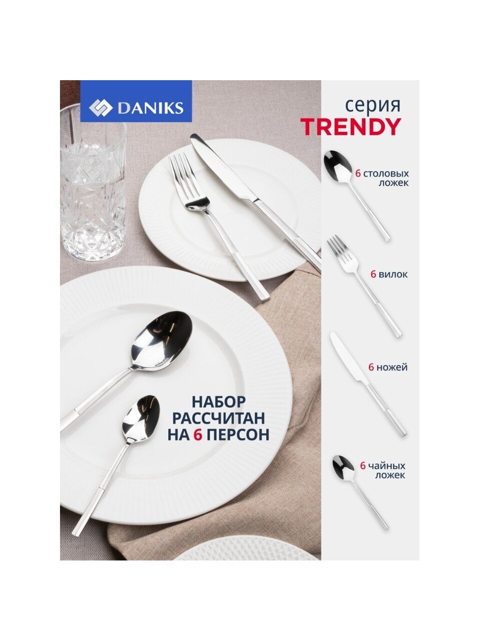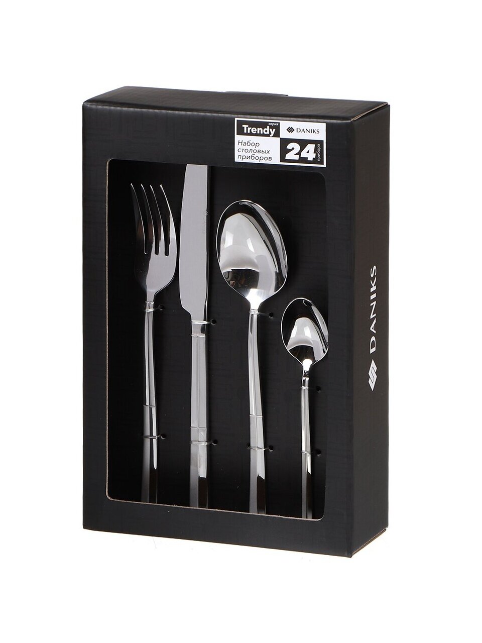 Набор столовых приборов Daniks Trendy 24 предмета — современный стиль для сервировки, долговечность нержавеющей стали, выгодное решение для семьи и подарка.