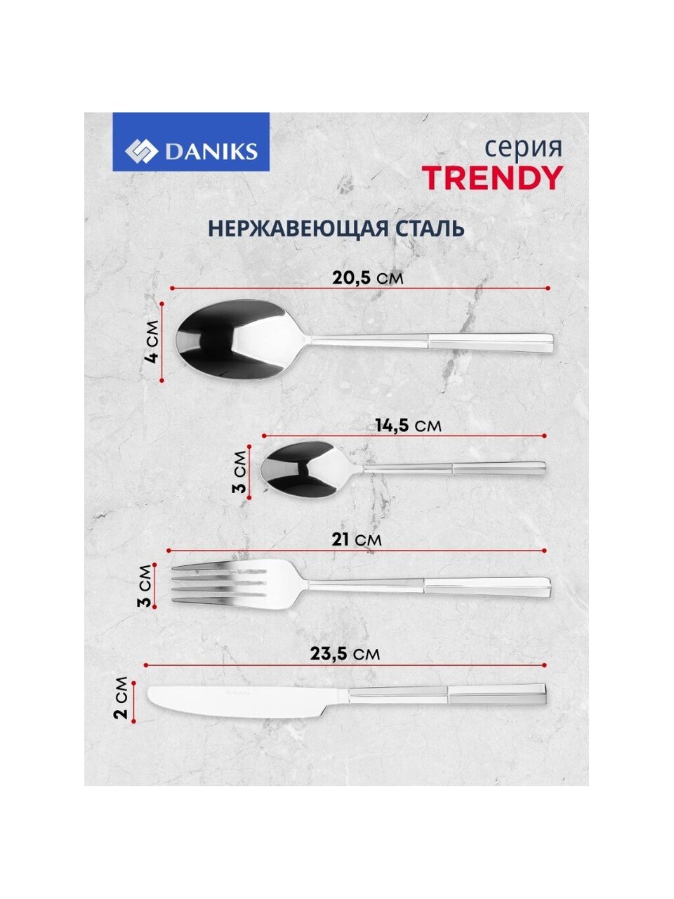 Закажите набор столовых приборов Daniks Trendy прямо сейчас — получите современное решение для сервировки по доступной цене и с гарантией качества от проверенного бренда.