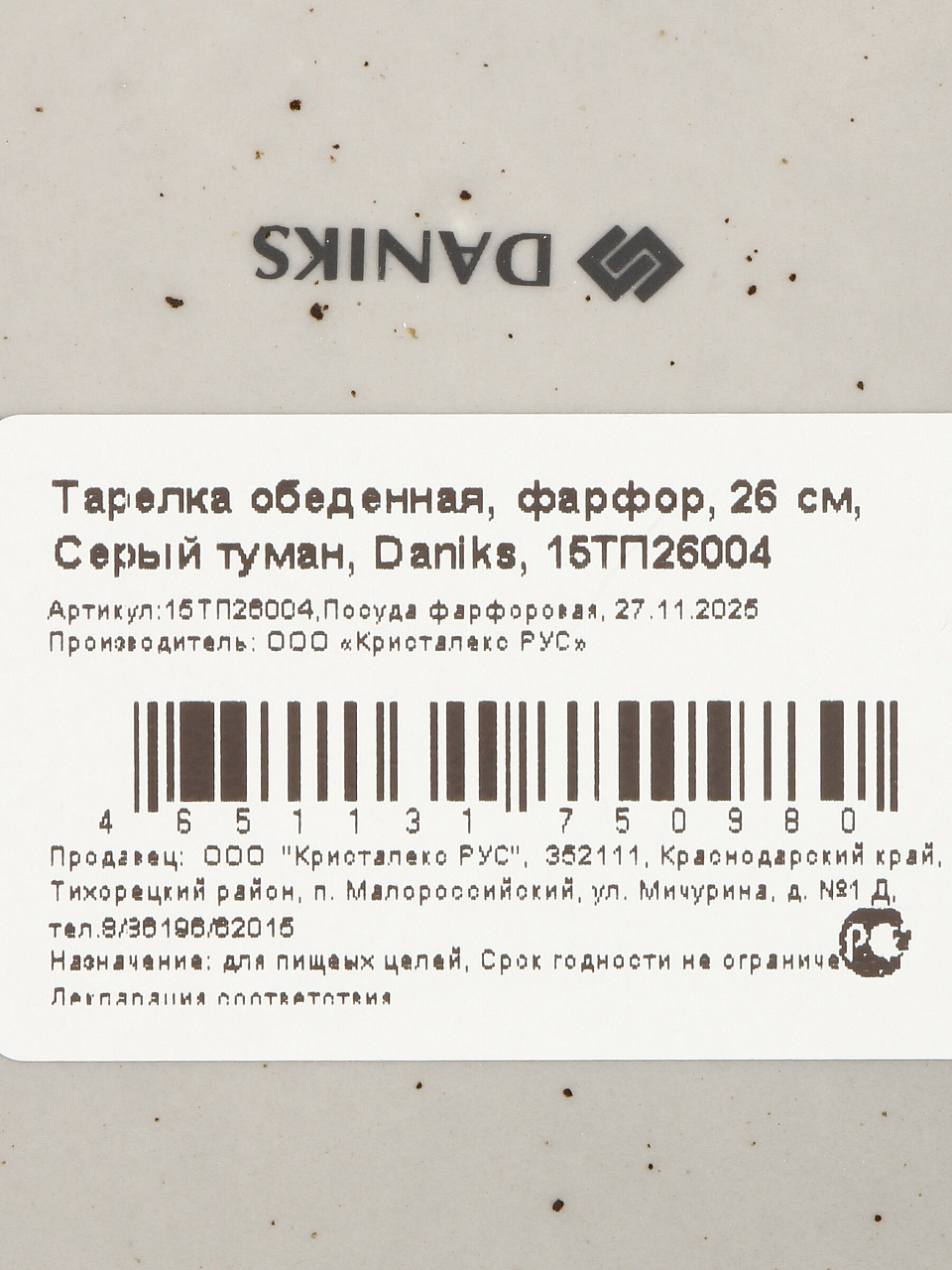 Вы можете приобрести «Тарелка обеденная, фарфор, 26 см, Серый туман, Daniks, 15ТП26004» и другие товары в нашем интернет-магазине в Астрахани по низким ценам и с бесплатным самовывозом.