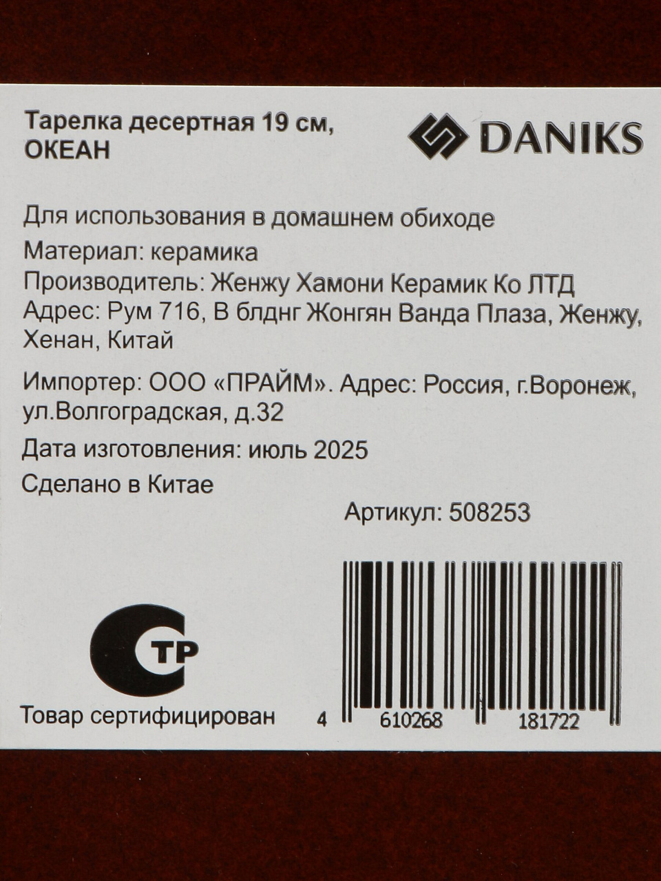 Вы можете приобрести «Тарелка десертная, керам, 19 см, кругл, Океан, Daniks, HMN250724A4-SP» и другие товары в нашем интернет-магазине в Ельце по низким ценам и с бесплатным самовывозом.