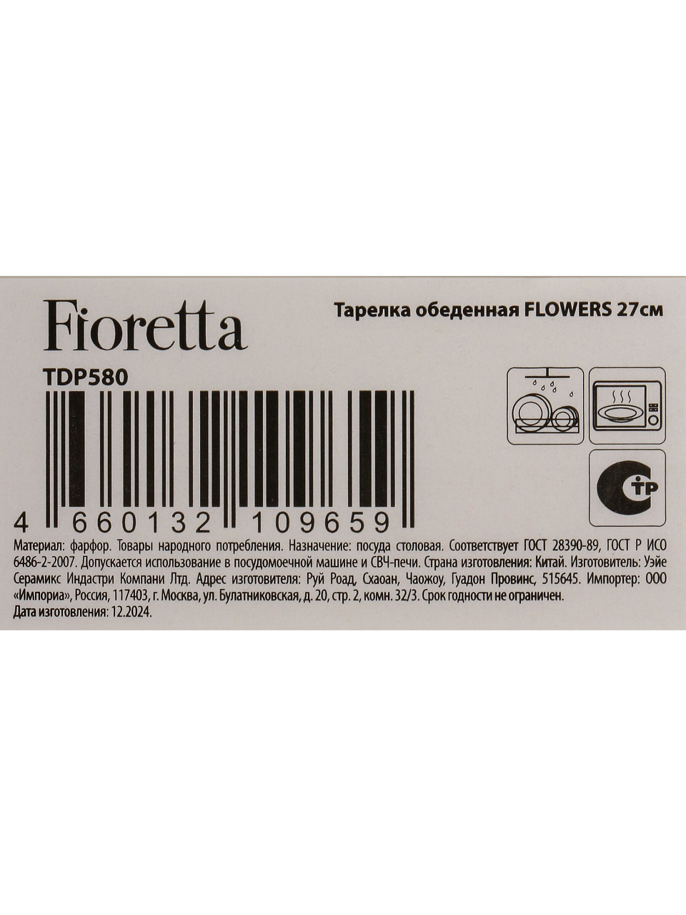 Вы можете приобрести «Тарелка обеденная, фарфор, 27 см, кругл, Flowers, Fioretta, TDP580» и другие товары в нашем интернет-магазине в Липецке по низким ценам и с бесплатным самовывозом.