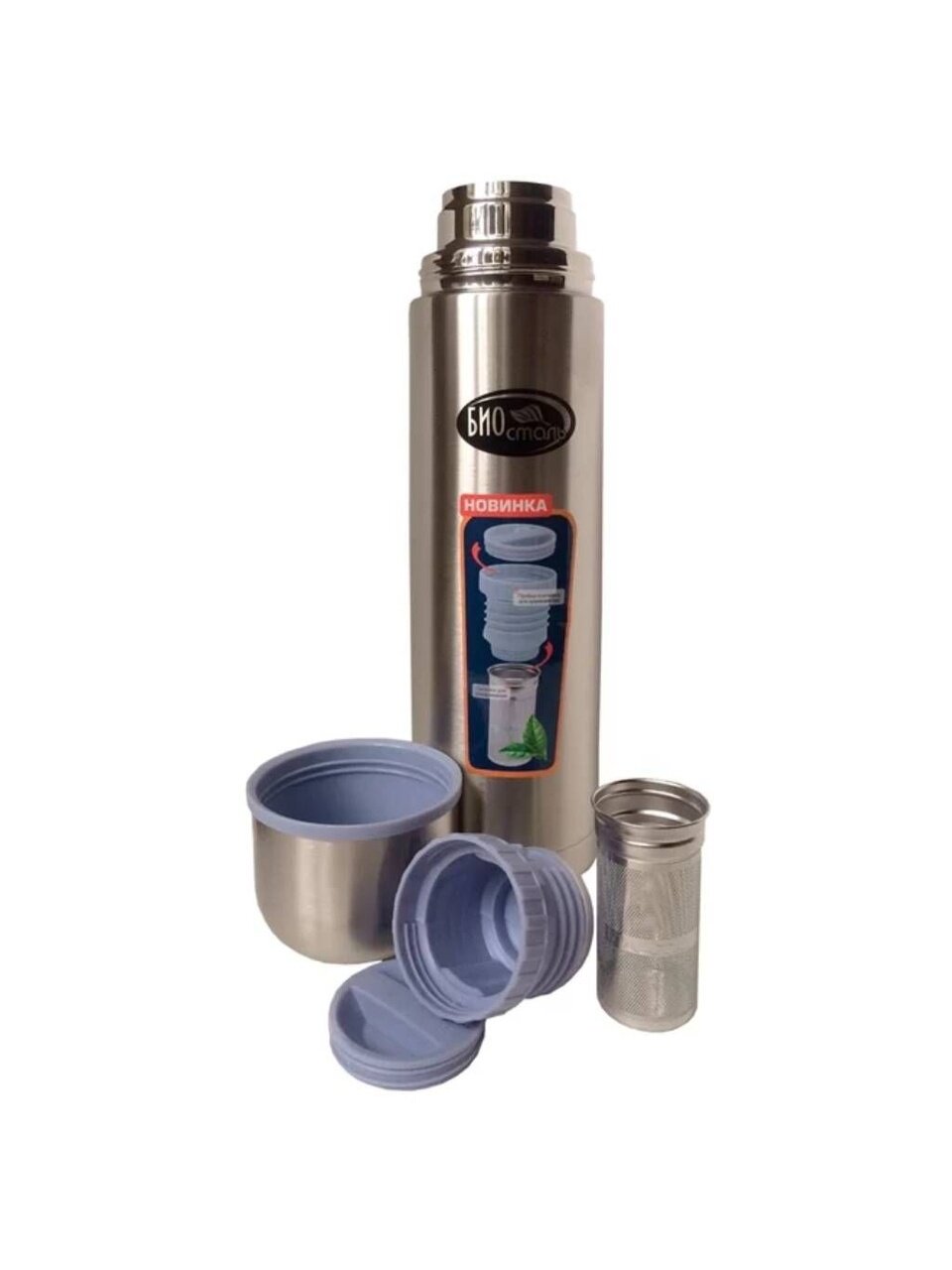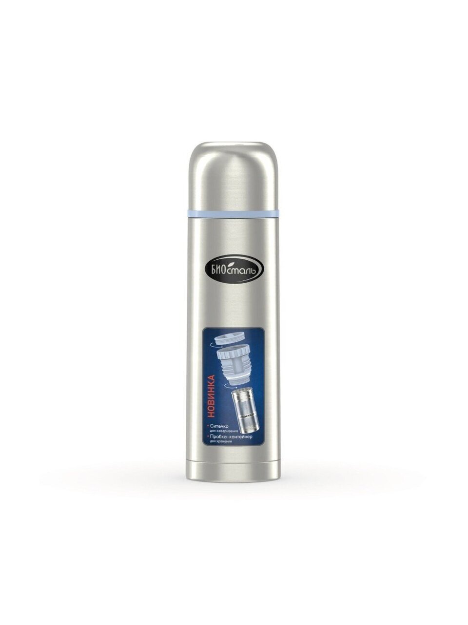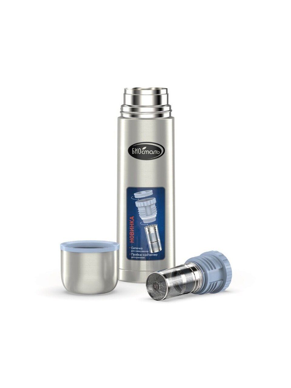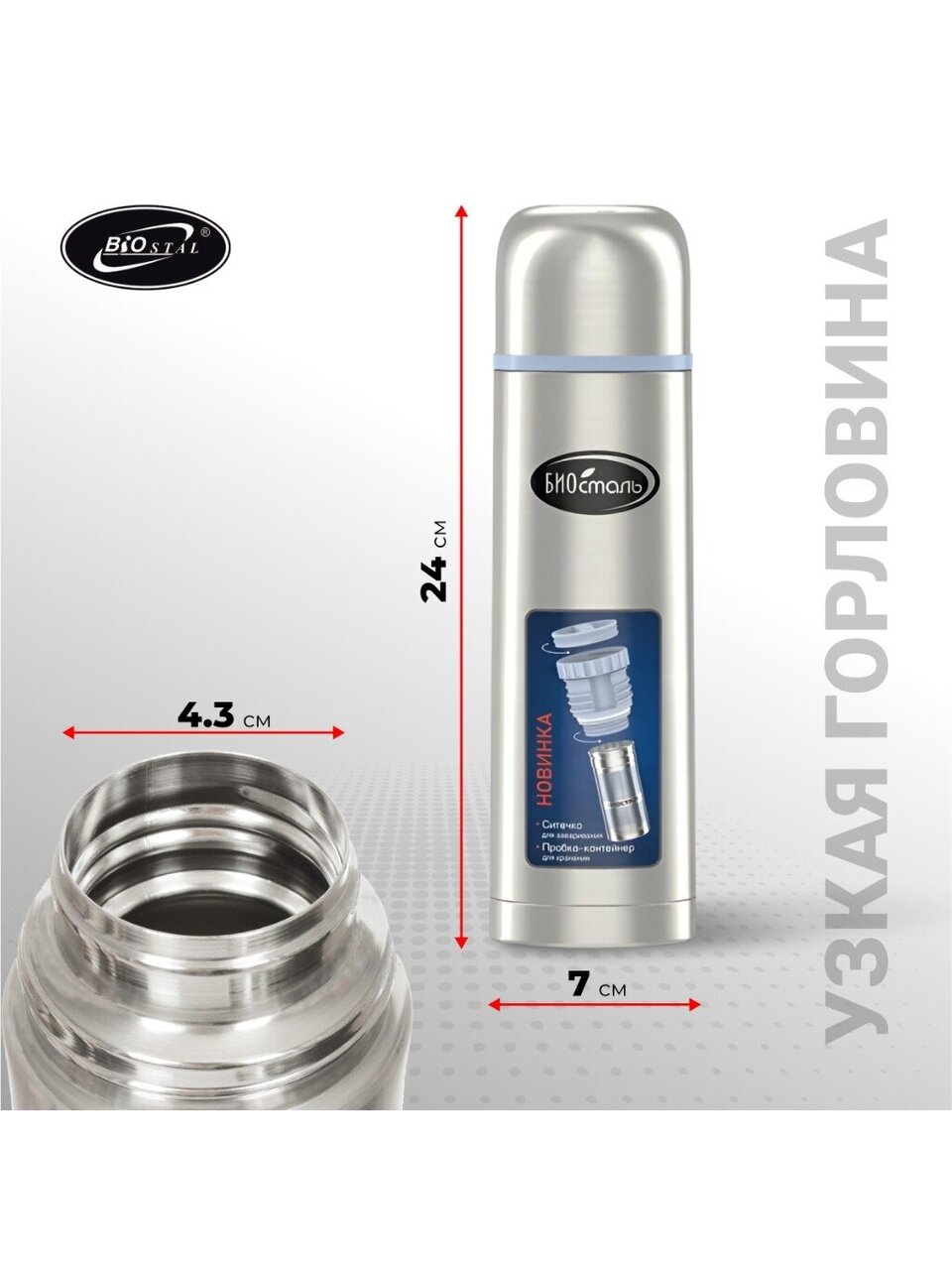 Термос Biostal 0.5 л из нержавеющей стали с ситечком — держит тепло до 24 часов, компактен, идеален для города, путешествий и подарка.