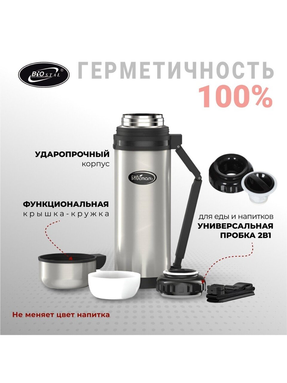 Термос для еды Biostal 1.8 л — сохраняет тепло до 36 часов, ударопрочный корпус из нержавеющей стали, универсальная горловина для любых блюд.