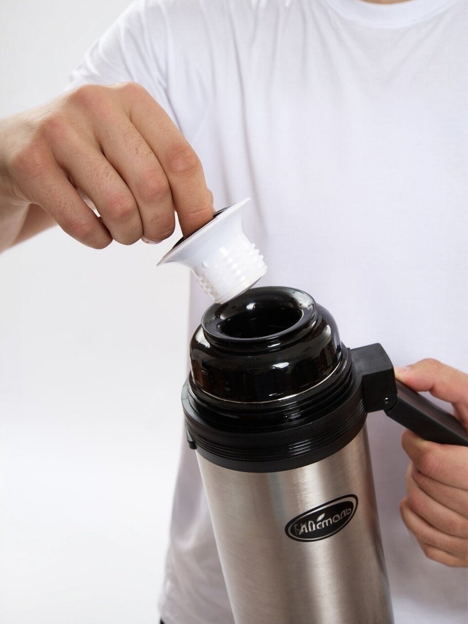 - Объем 1.8 л, корпус и колба из нержавеющей стали — долговечность и защита от повреждений.