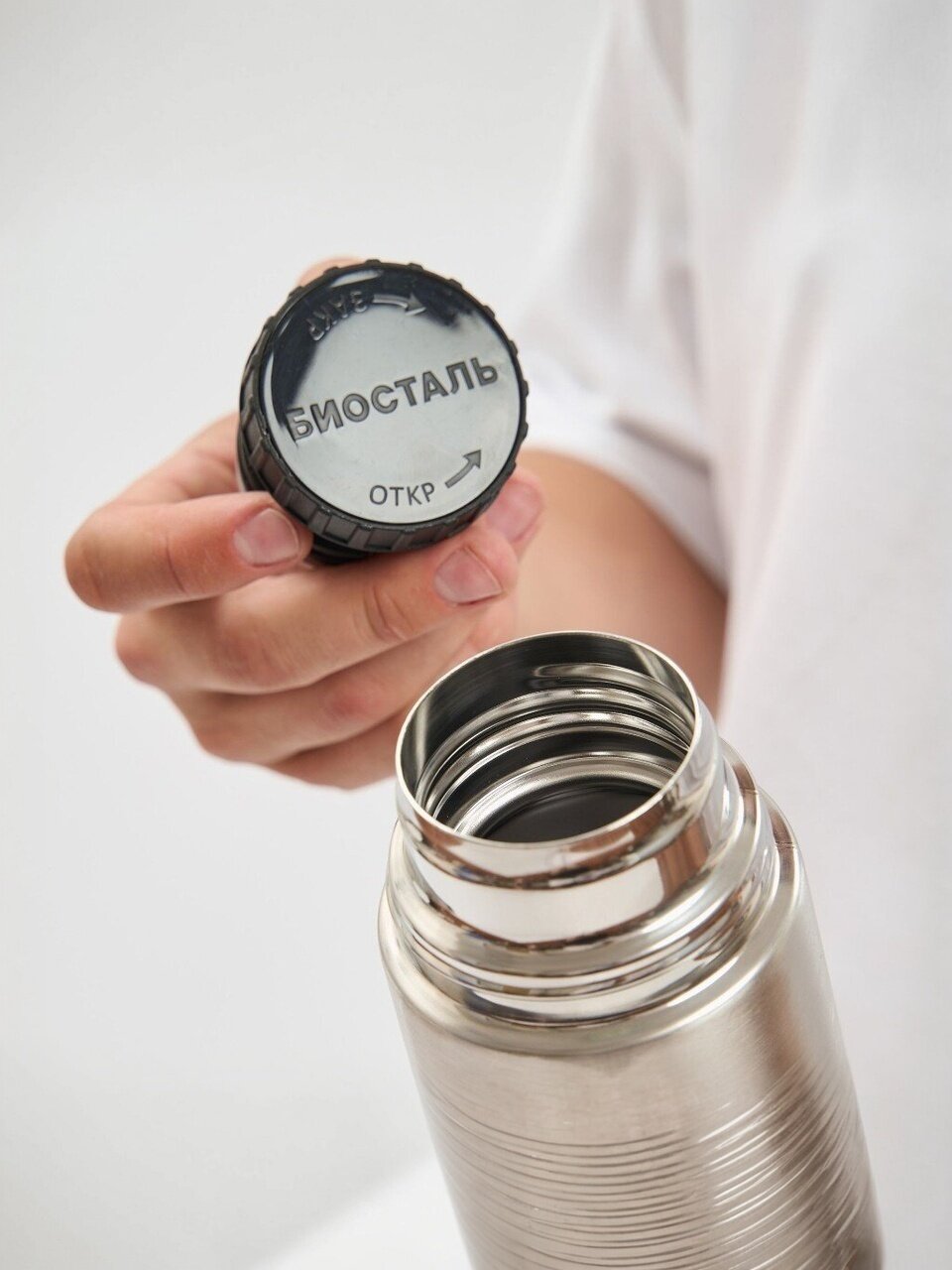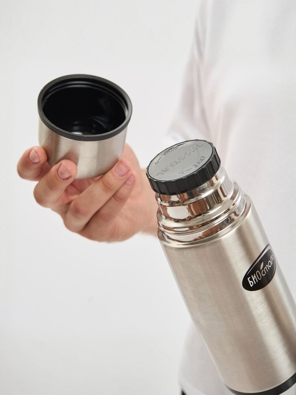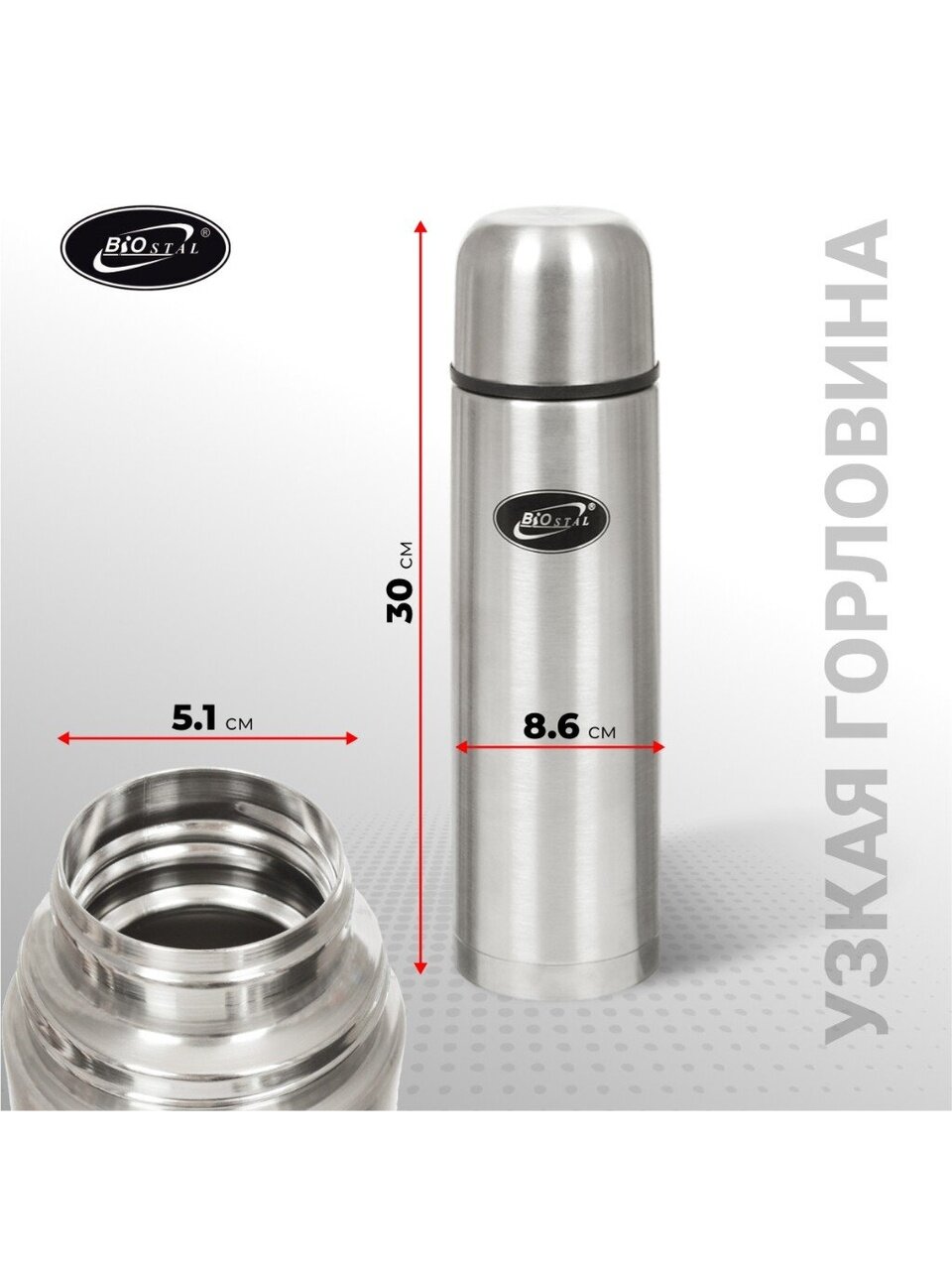 Термос Biostal 1 л из нержавеющей стали: сохраняет напитки горячими до 32 часов, холодными до 40 часов. Идеален для дома, города, поездок. Ударопрочный корпус, узкая горловина — удобно наливать и мыть.