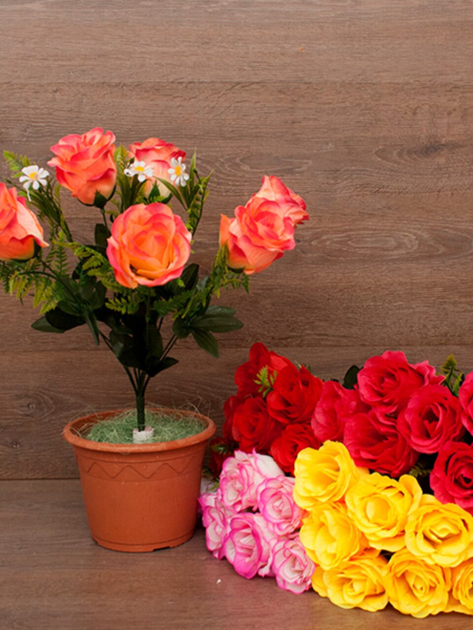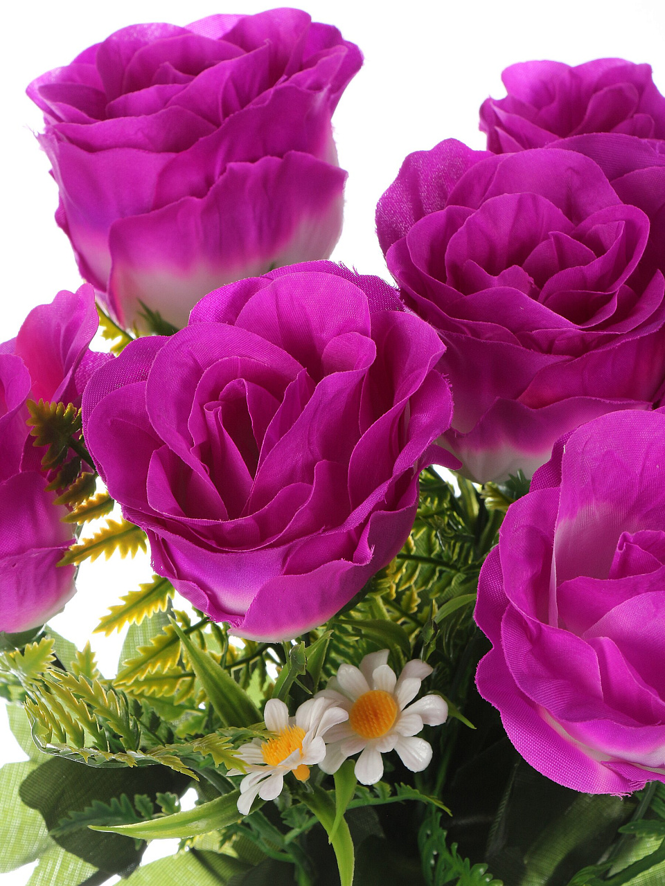 Букет выполнен из пластмассы и текстиля, имитирует натуральные розы и ромашки, представлен в ассортименте цветов — вы всегда сможете подобрать подходящий вариант.