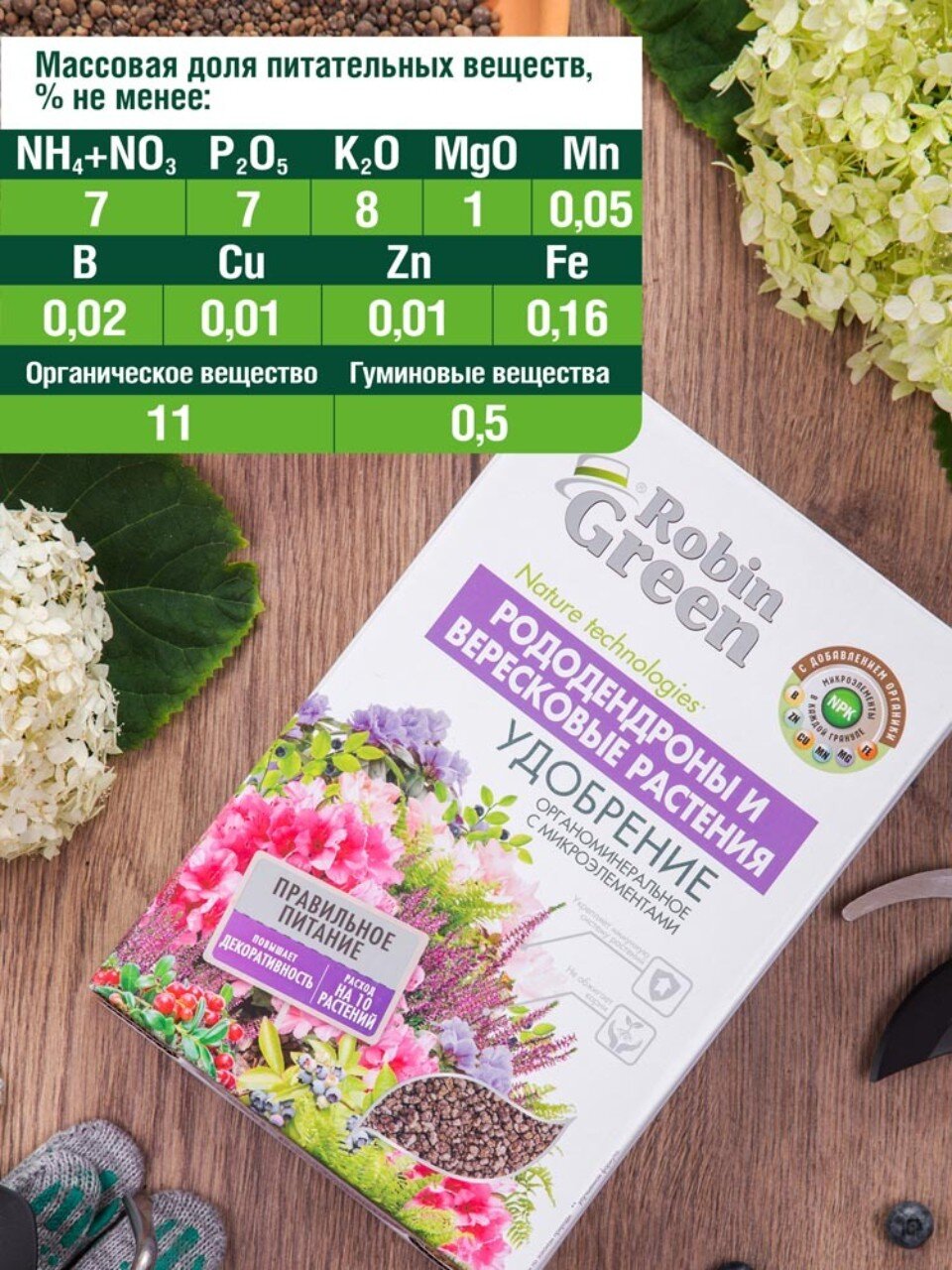 Органоминеральное удобрение Робин Грин для рододендронов и вересковых — здоровый рост, яркое цветение и защита от хлороза уже после первого применения. 1 кг — оптимально для сада и дачи.