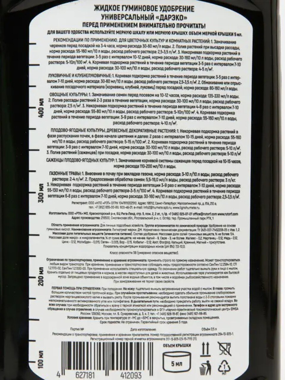 Универсальное жидкое удобрение ДАРэко 0,5 л: ускоряет рост, усиливает цветение, подходит для всех растений круглый год — идеальный выбор для дачи и дома.