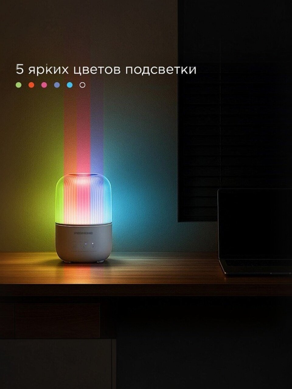 - Универсальный белый дизайн, функция ароматизации и подсветка — подходит для квартиры, дачи, детской или в подарок