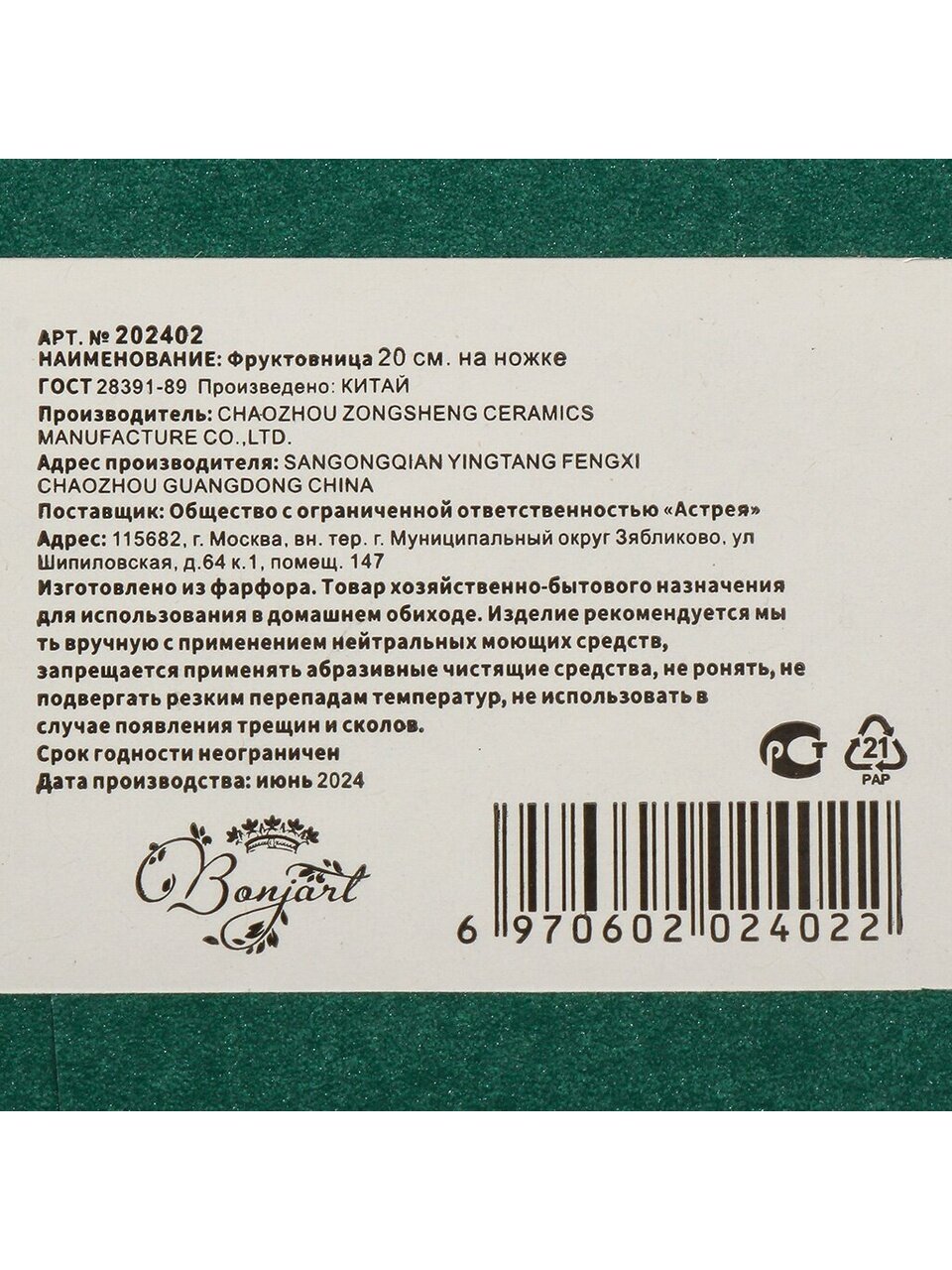 Вы можете приобрести «Ваза для фруктов, фарфор, на ножке, 14х20 см, Bonjart, 202402» и другие товары в нашем интернет-магазине в Курске по низким ценам и с бесплатным самовывозом.