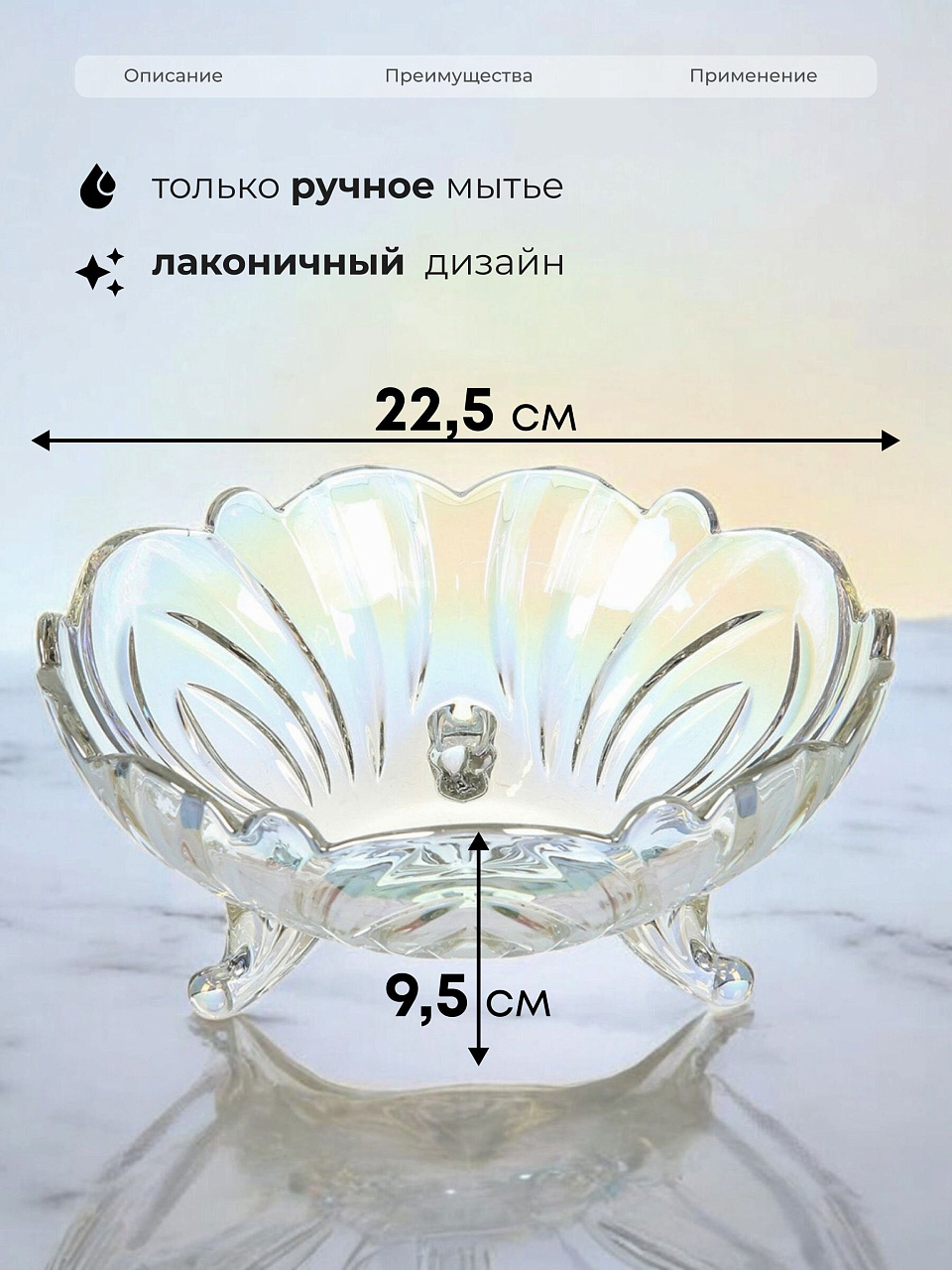 Красивая элегантная ваза для фруктов будет украшением любого обеденного стола. Стекло, из которого изготовлена конфетница, делает ее долговечной в повседневном использовании.