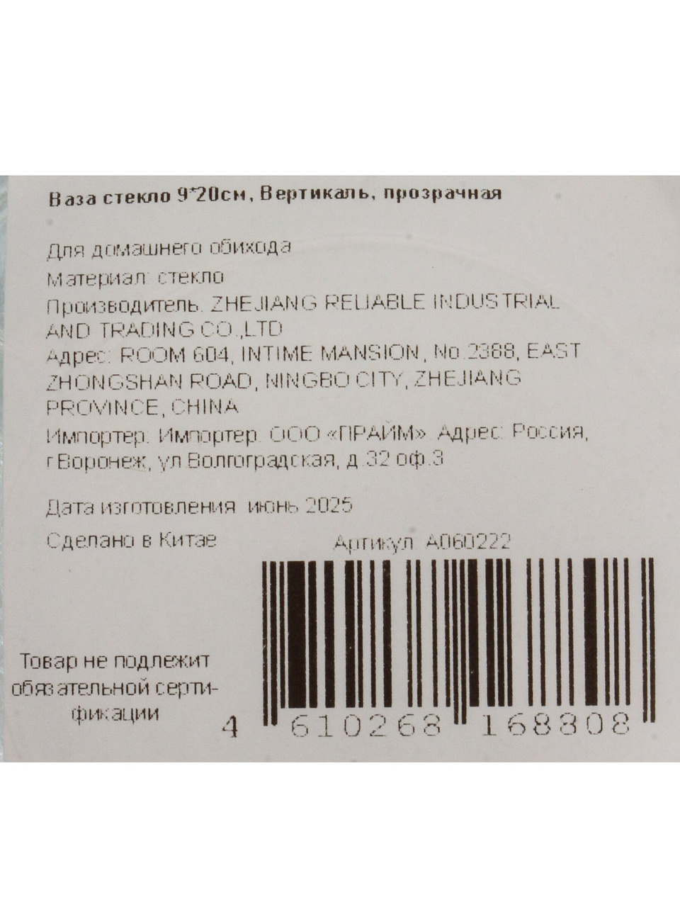 Ваза стекло, настольная, 9х20 см, Вертикаль: стильный акцент для интерьера, прозрачность и универсальность для дома, дачи и подарка — купить недорого с гарантией качества.