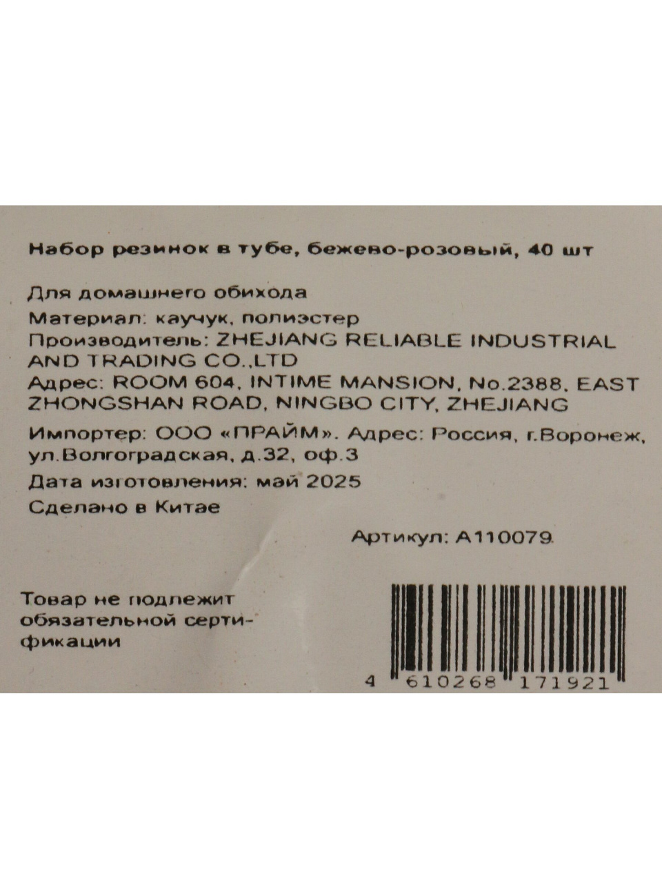 Набор резинок в тубе, 40шт, бежево-розовый, A110079