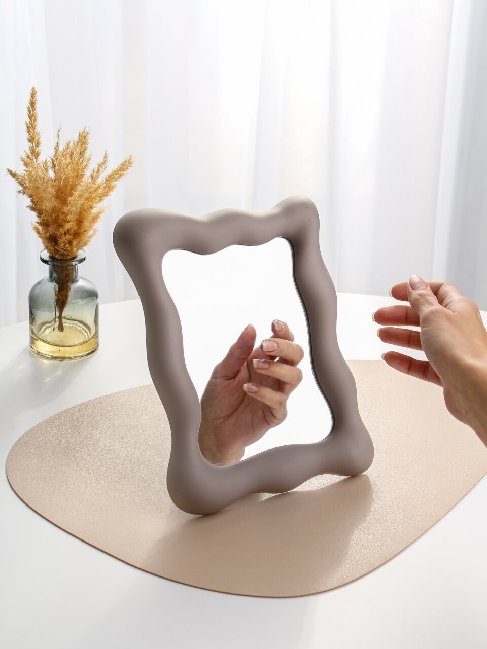 Стильное настольное зеркало 17.5х23.5 см в матовой серо-бежевой оправе: идеальный аксессуар для макияжа, ухода и подарка — по выгодной цене!