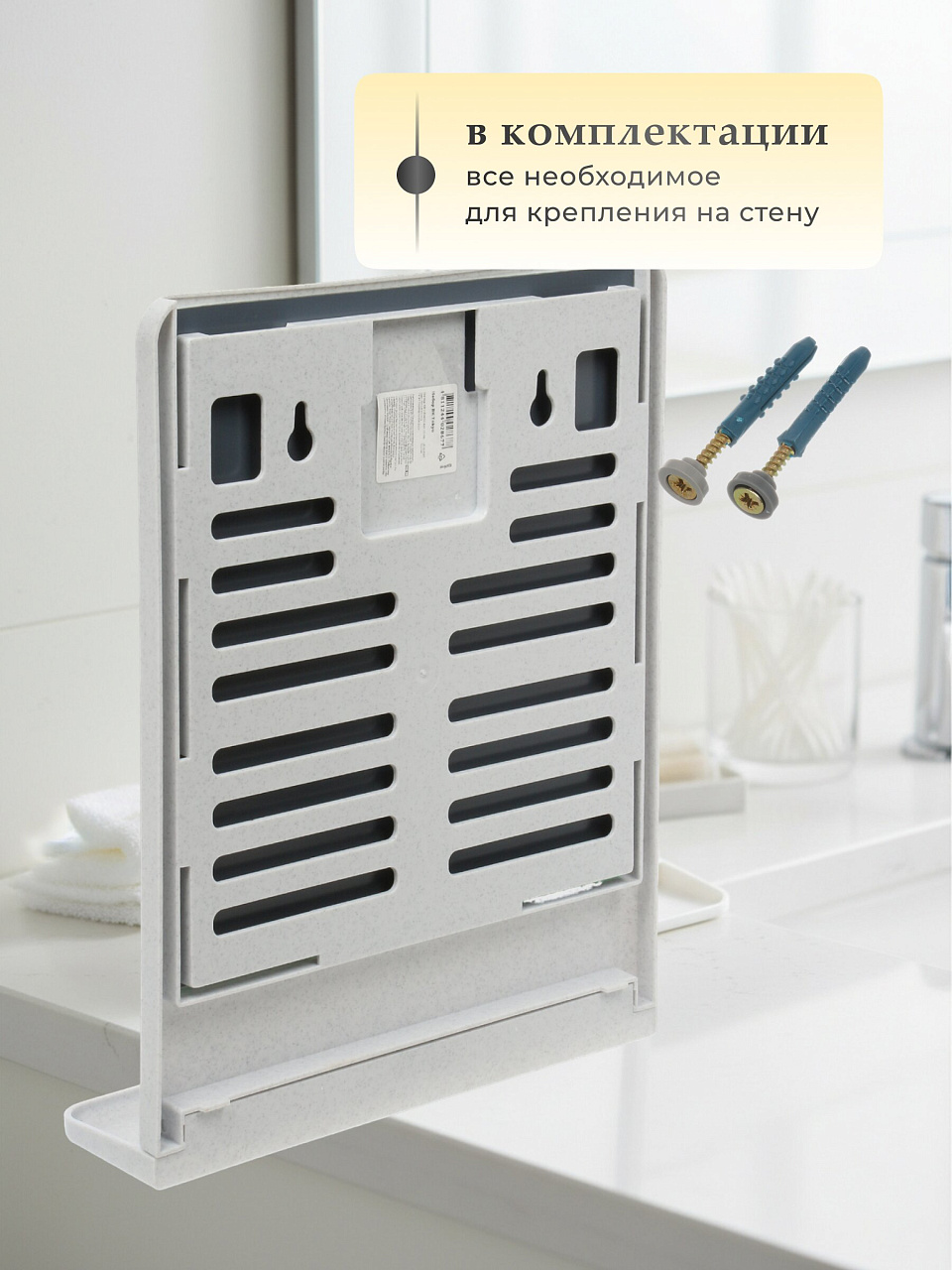 - Встроенная в зеркальную раму полочка не требует дополнительных манипуляций по навешиванию. Ширина подставки позволяет хранить на ней зубные принадлежности, косметические средства и аксессуары для волос.