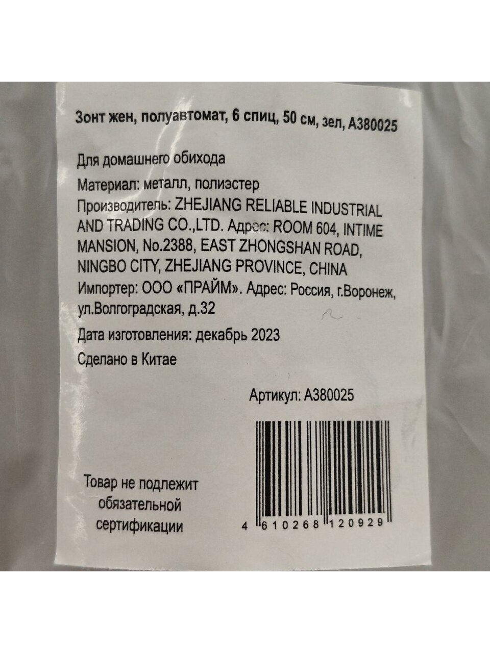 Вы можете приобрести «Зонт полуавтомат, 6 спиц, 50 см, полиэстер, зеленый, A380025» и другие товары в нашем интернет-магазине в Обнинске по низким ценам и с бесплатным самовывозом.