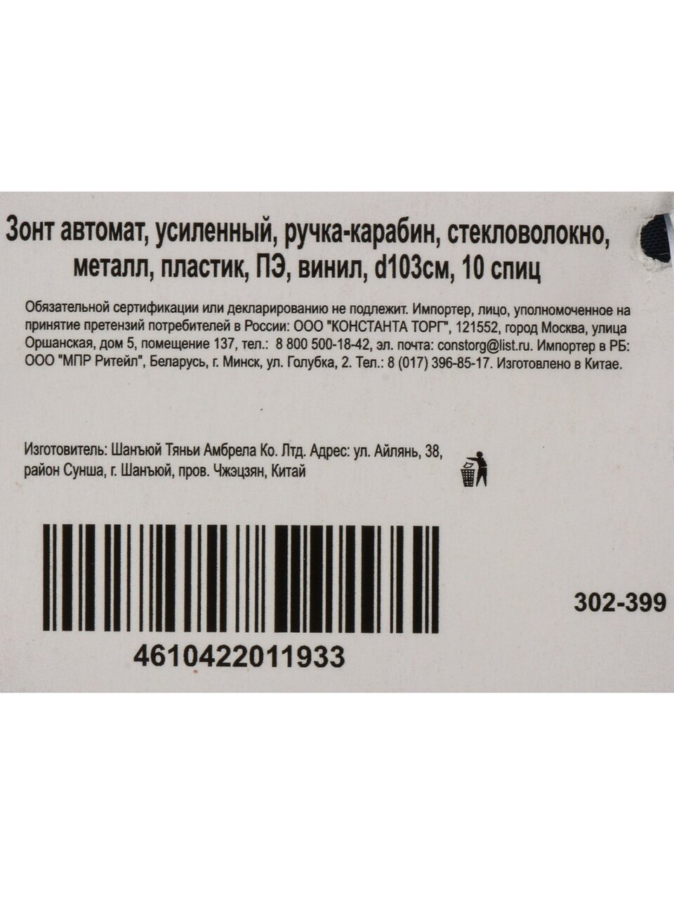 Вы можете приобрести «Зонт унисекс, автомат, 10 спиц, 103 см, стекловолокно, металл, пластик, полиэстер, винил, усиленный, ручка-карабин, в ассортименте, 302-399» и другие товары в нашем интернет-магазине в Ставрополе по низким ценам и с бесплатным самовывозом.